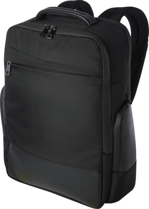Large travel 17 inch laptop backpack in 600D RPET polyester. Features several compartments as one main for clothes, two padded for laptop, tablet and more. Padded back panel, shoulder strap, hand grip.