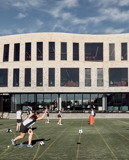 Nicholas学习中心(NLC)俯瞰学校球场,球场 举办各种体育和课外运动。