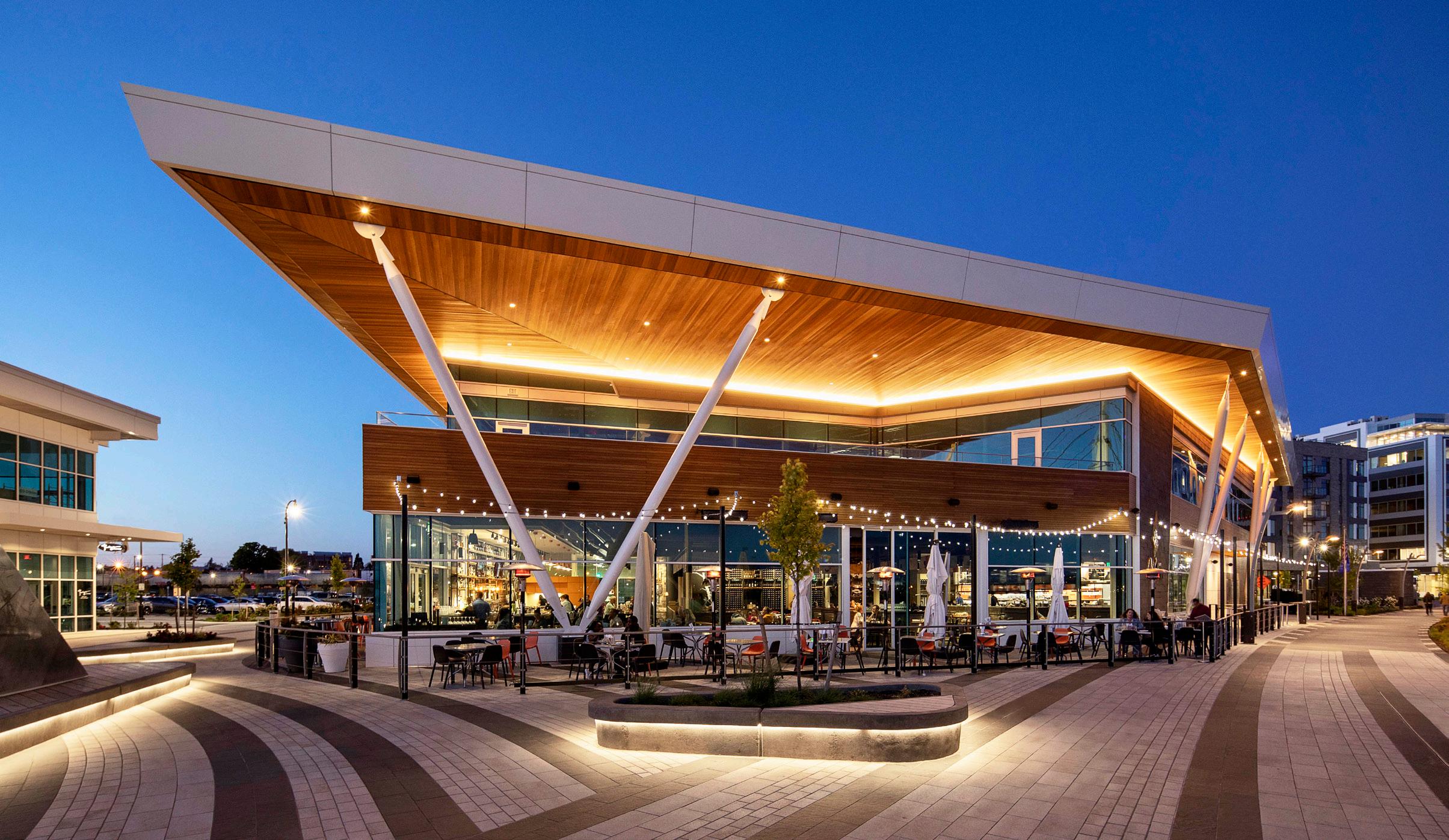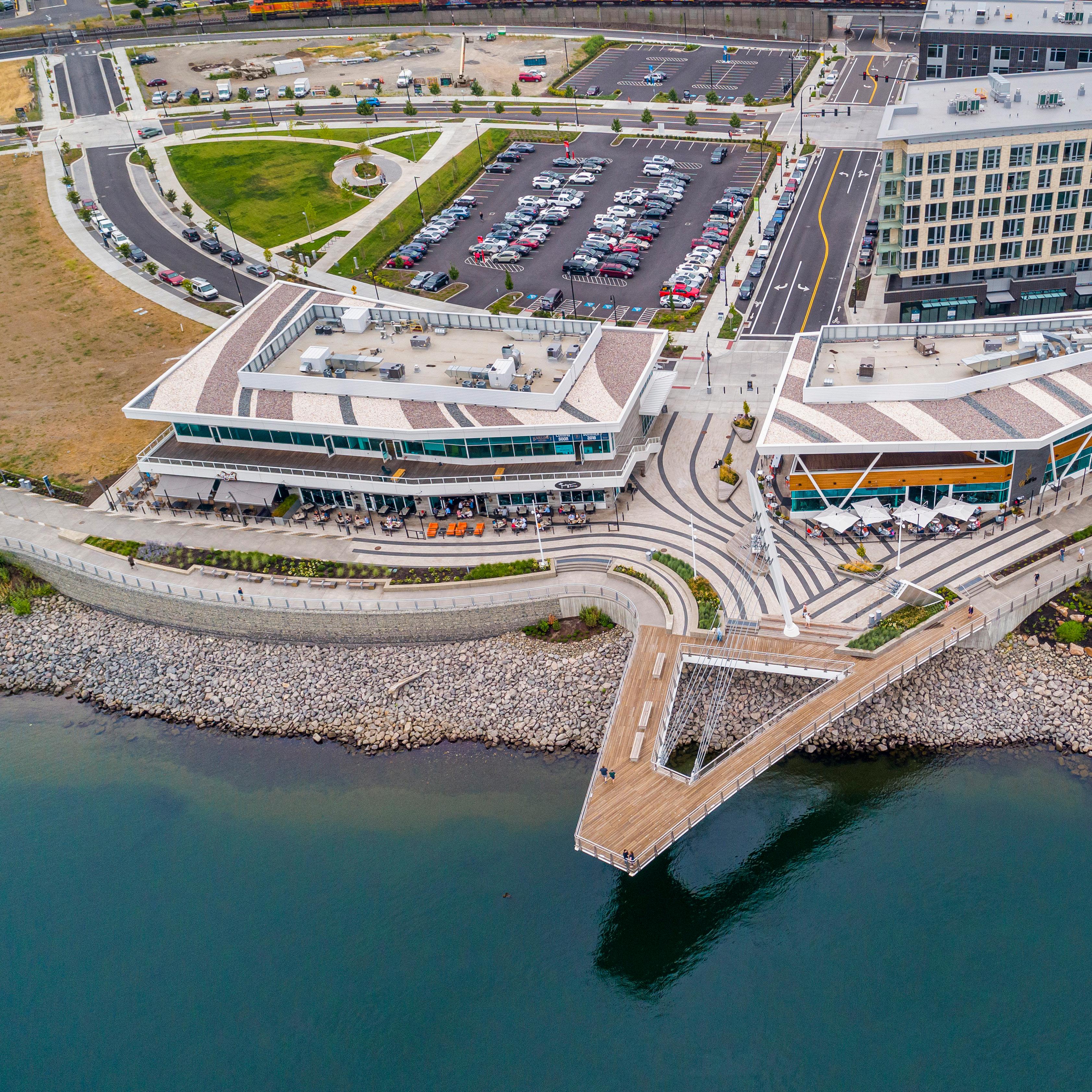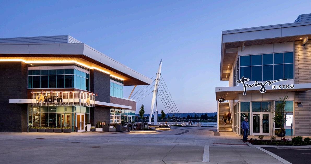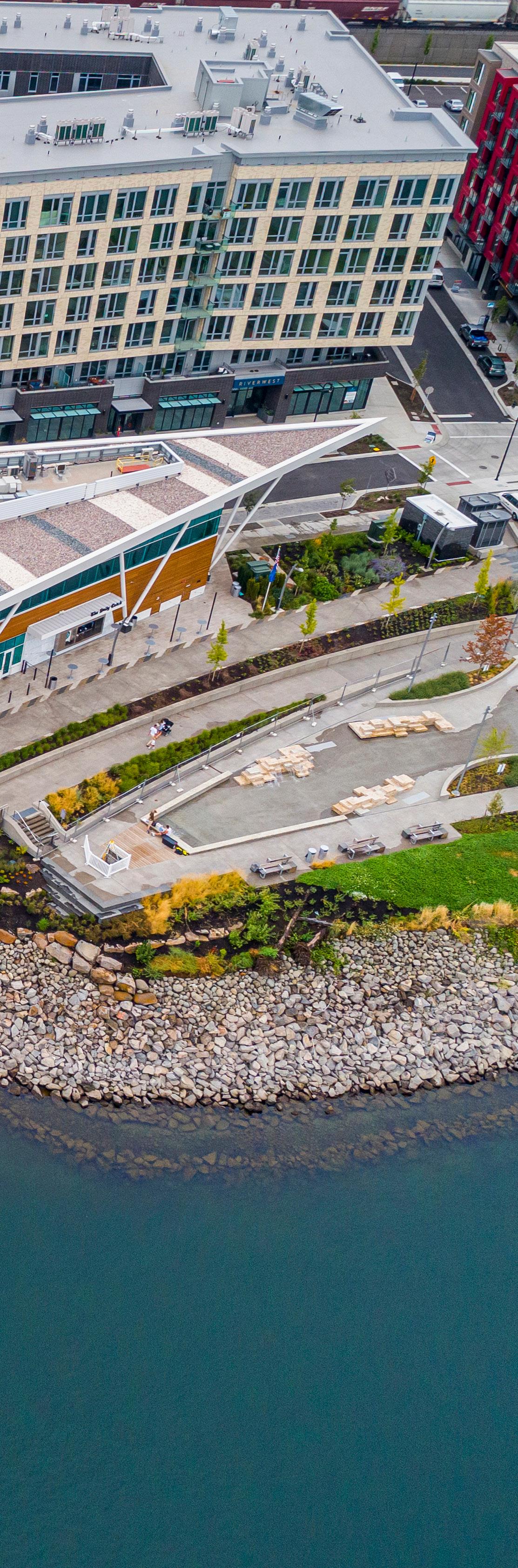 Portland Business Journal 2018 Transformer Award Winner. Located just off of the Grant Street Pier, these two restaurant and retail buildings are the flagship projects for the 32acre Vancouver Waterfront project.