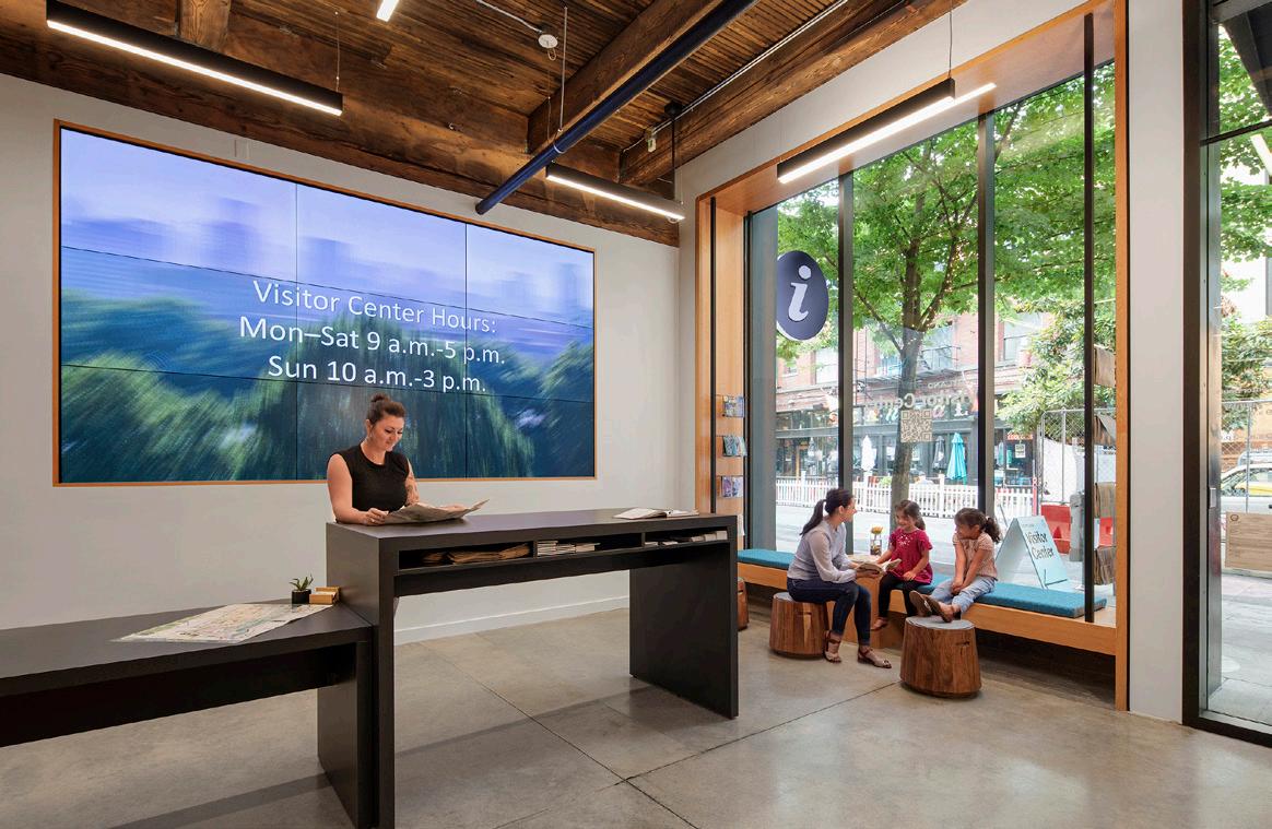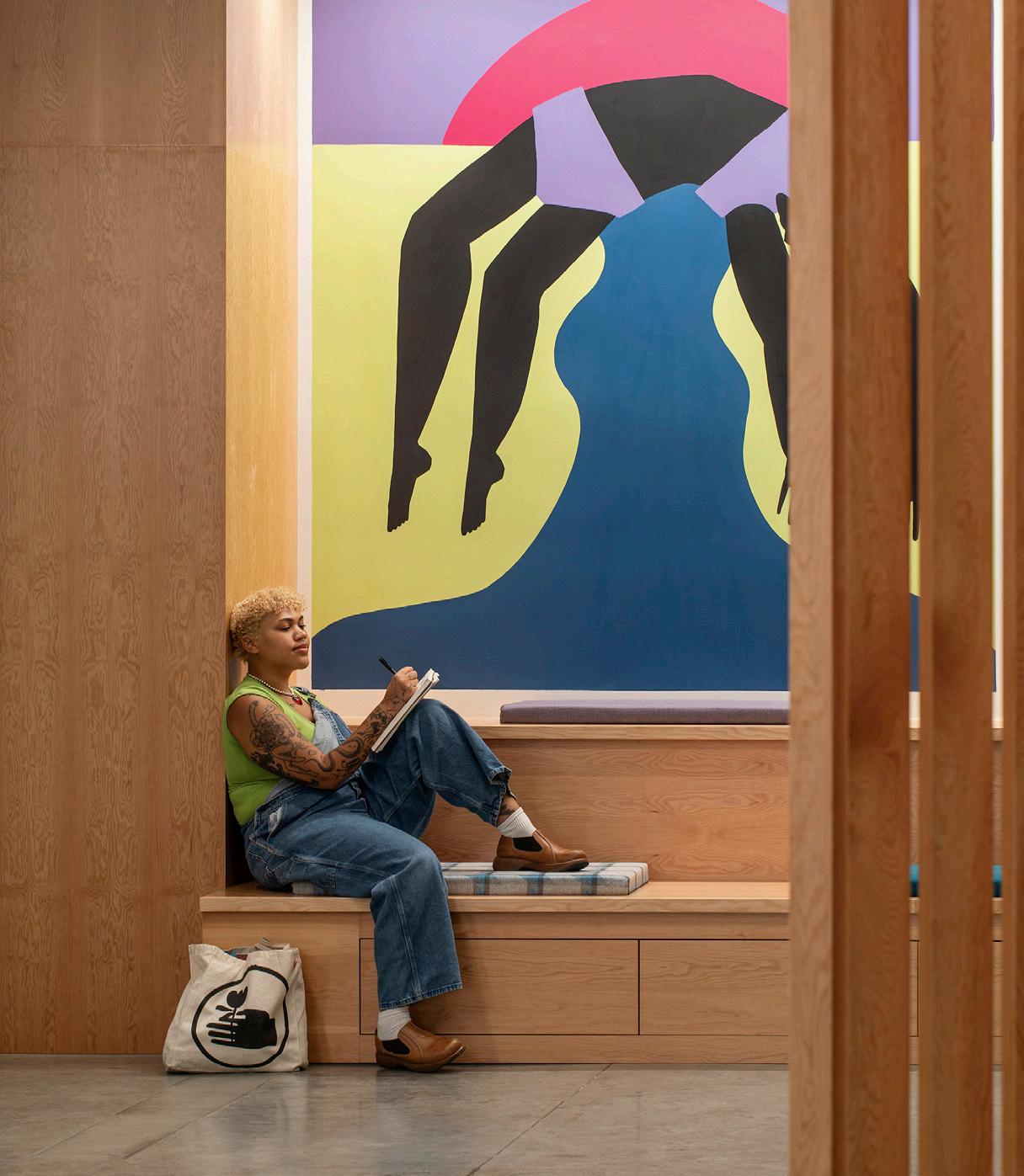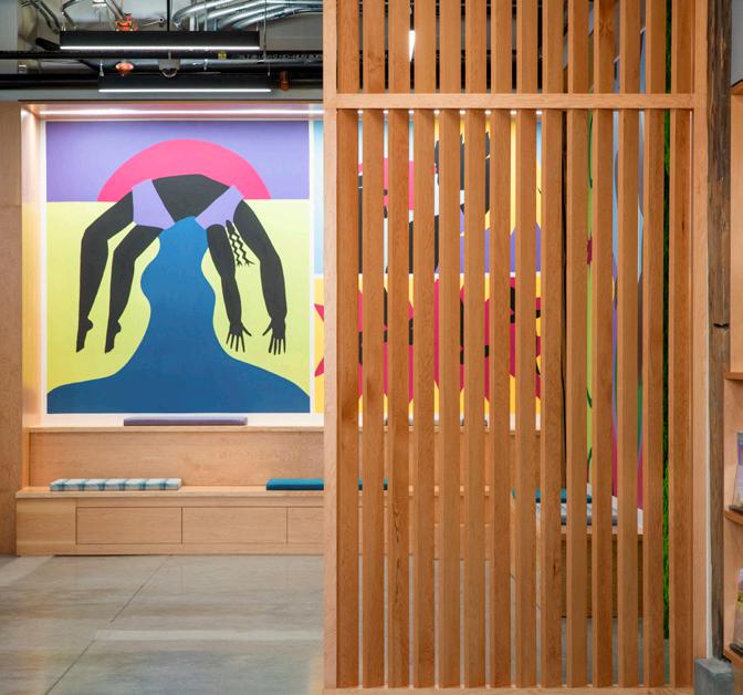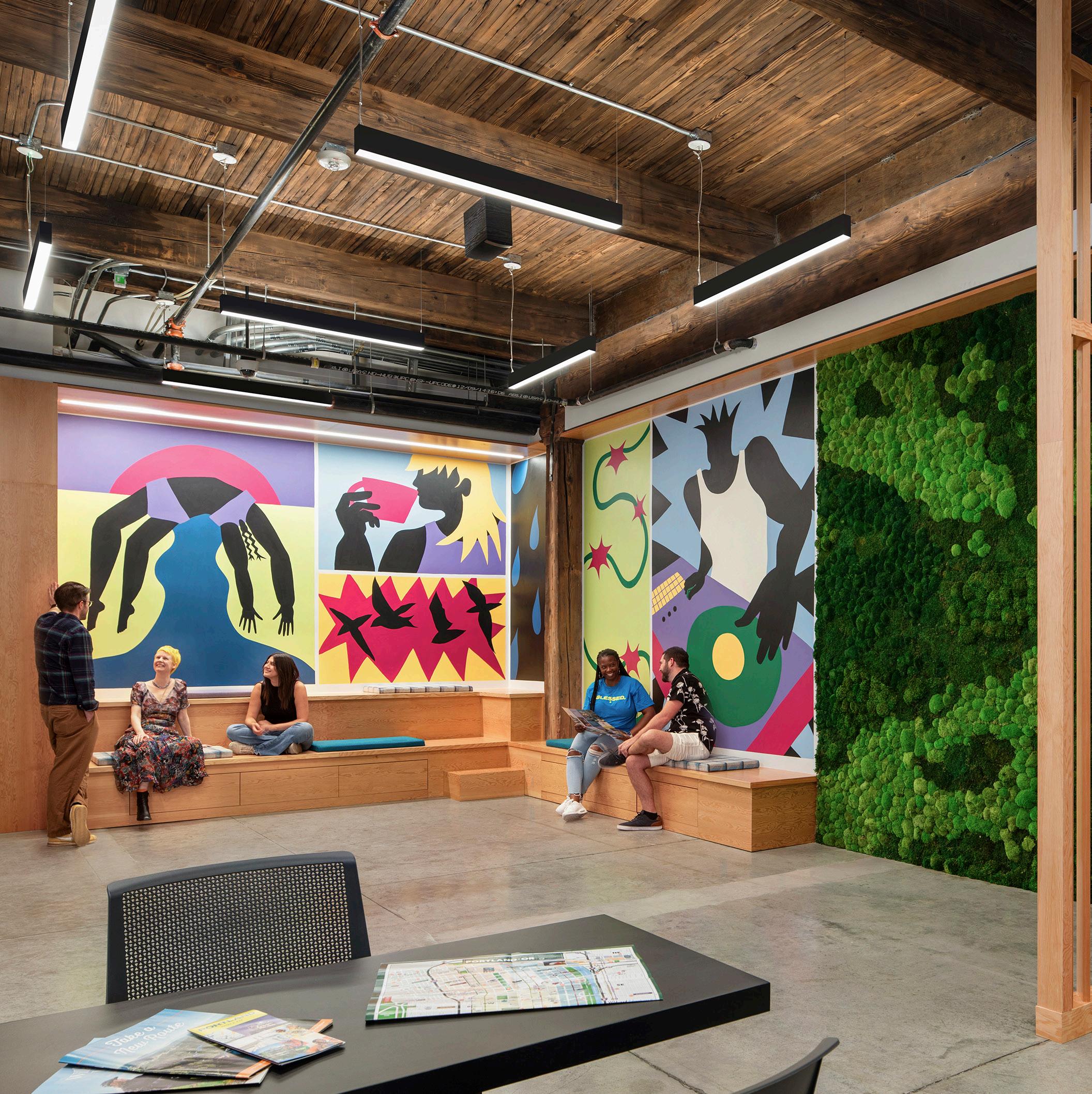 Winner of the 2023 IIDA Oregon Community Impact and People’s Choice Awards, recognizing its successful reflection of the client’s aspirational mission and enthusiastic hopefulness for the future of Portland; incorporates locally-sourced materials and products, and hand-painted murals by a local artist.