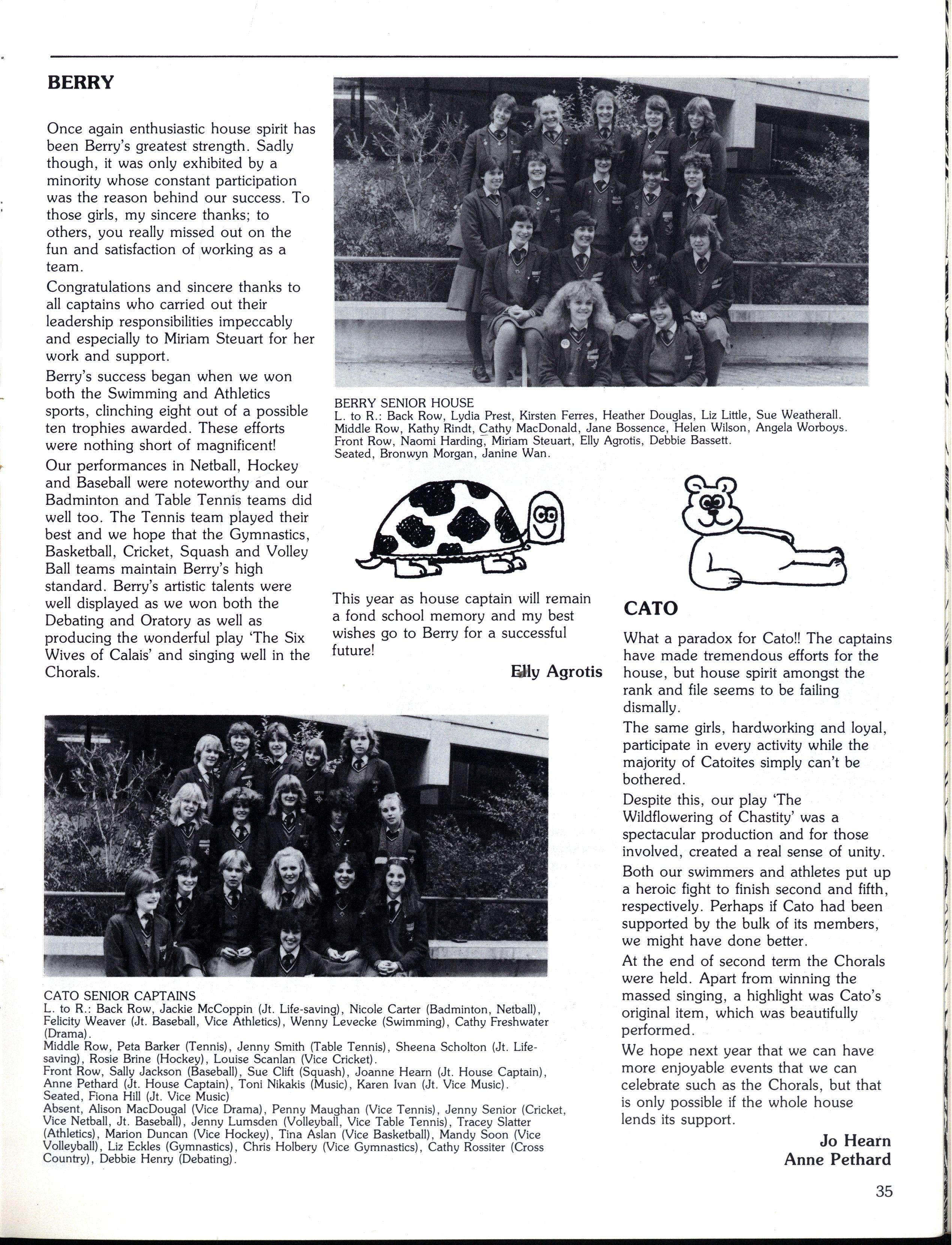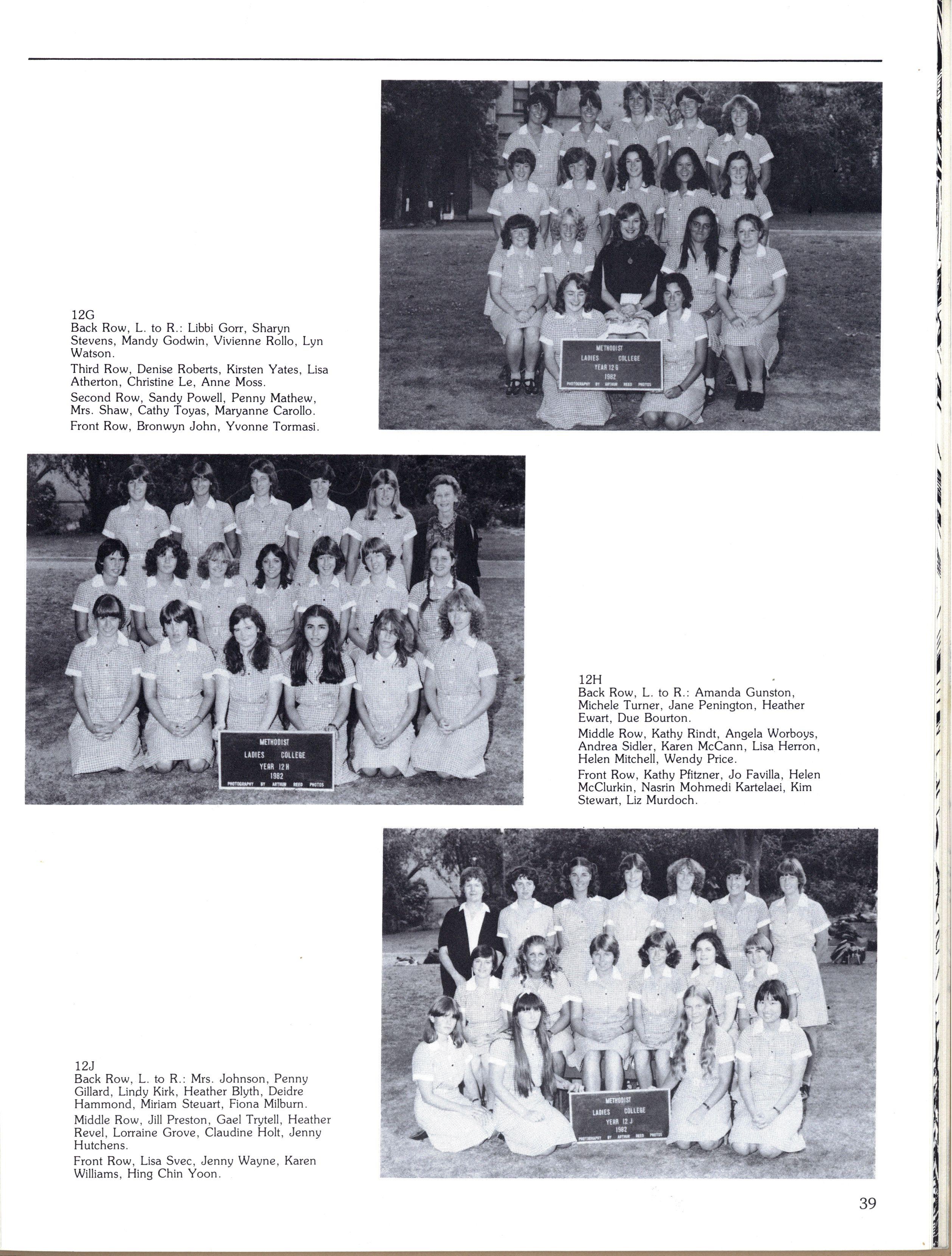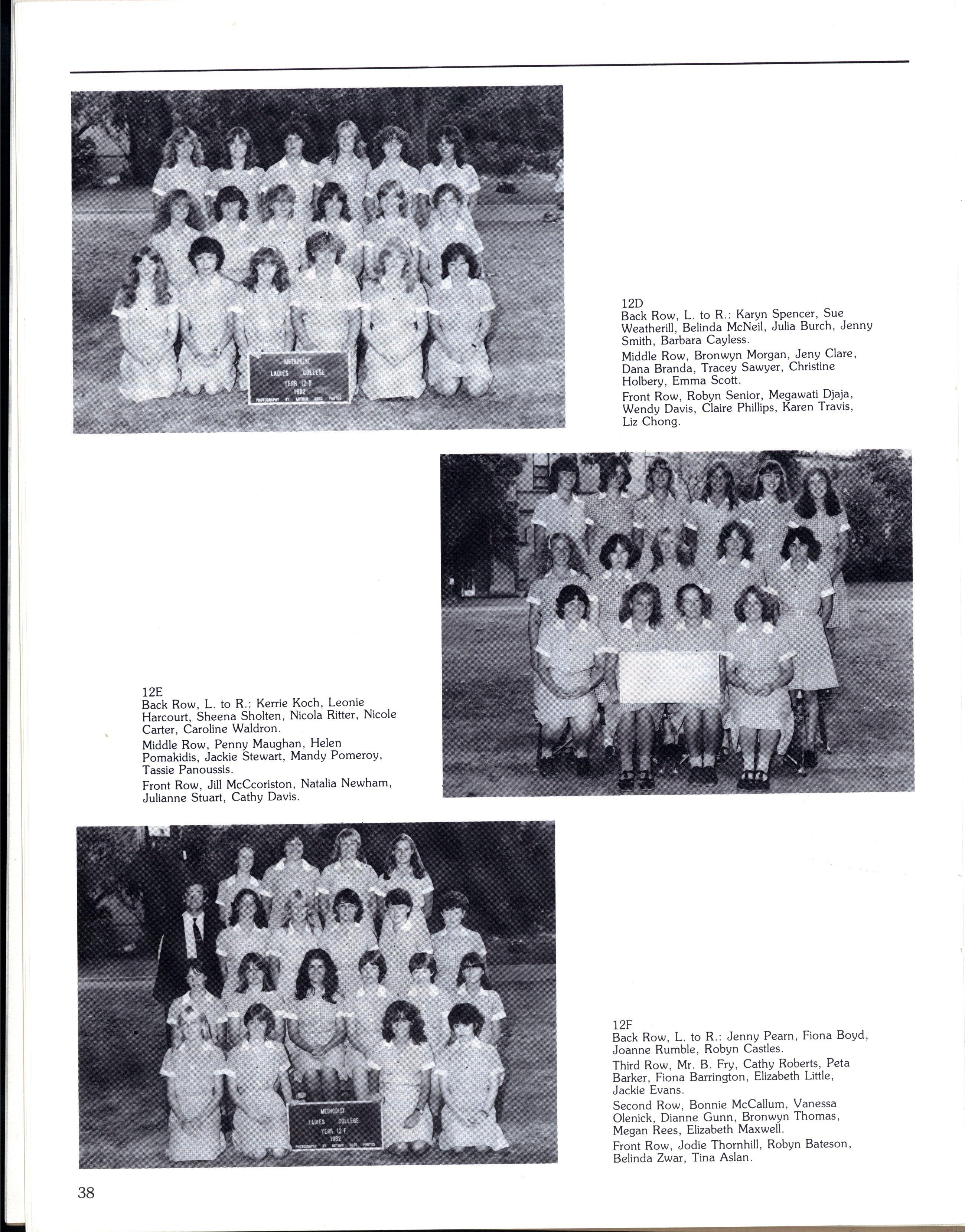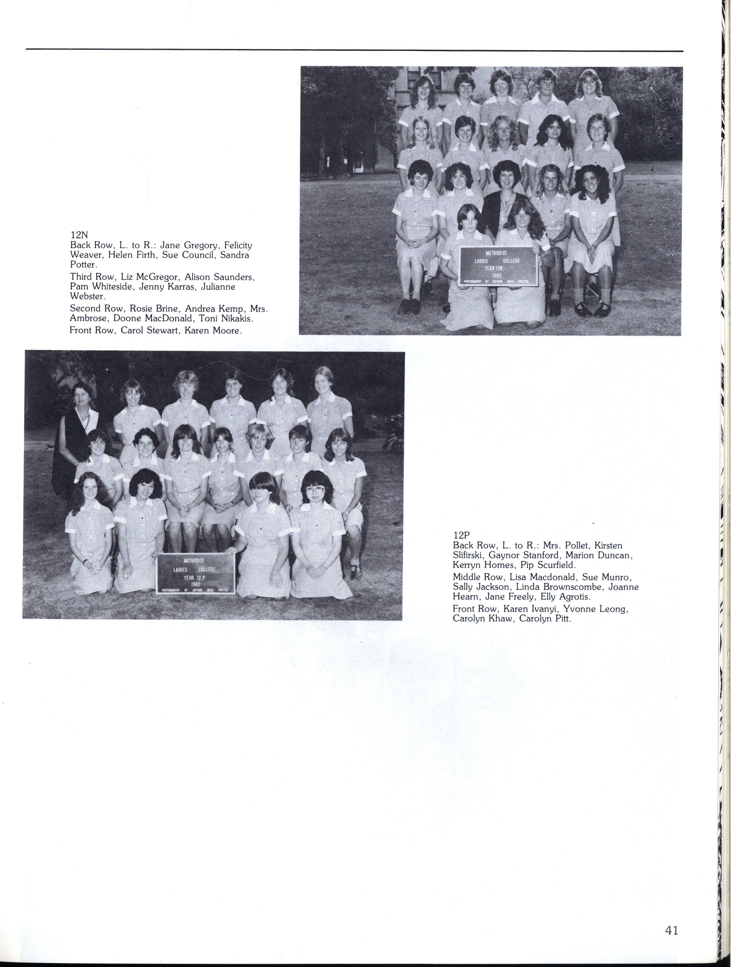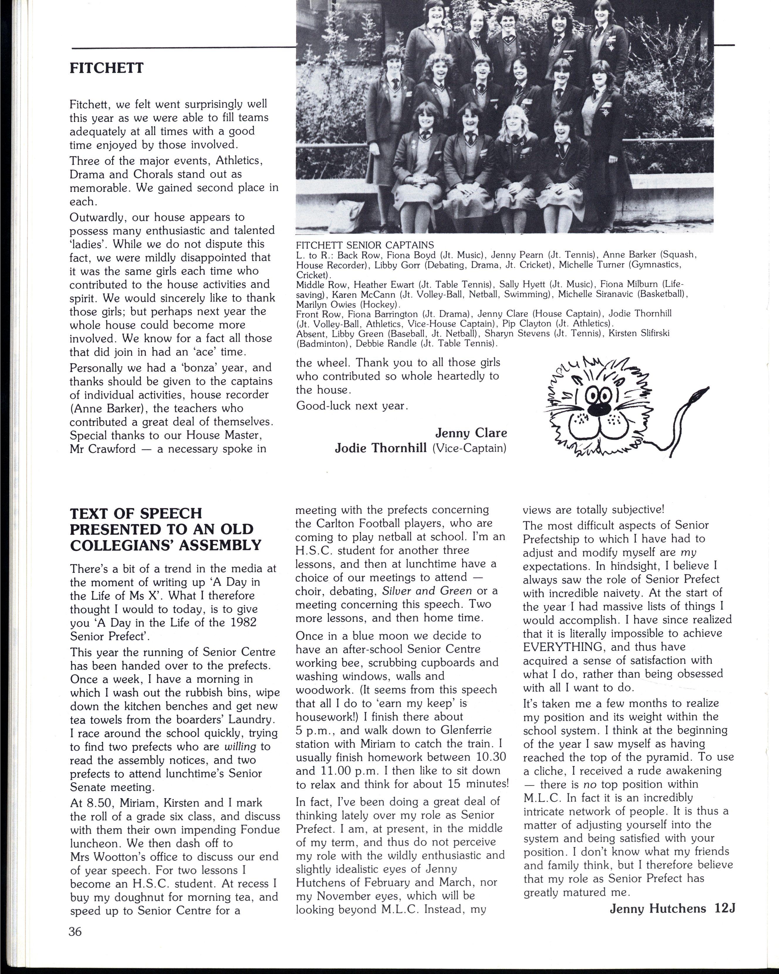 The scholastic, emotional and physical demands of Year 12 are far greater than any of us could ever have contemplated in Year 11. It has been a year, which I believe none of us would ever want to endure again. At times, some of us have felt that we have outgrown our roles of schoolgirls and' prefects. Perhaps, for some of us, the girls we were toward the end of Year 11 were more suited to the roles than we were during this year.