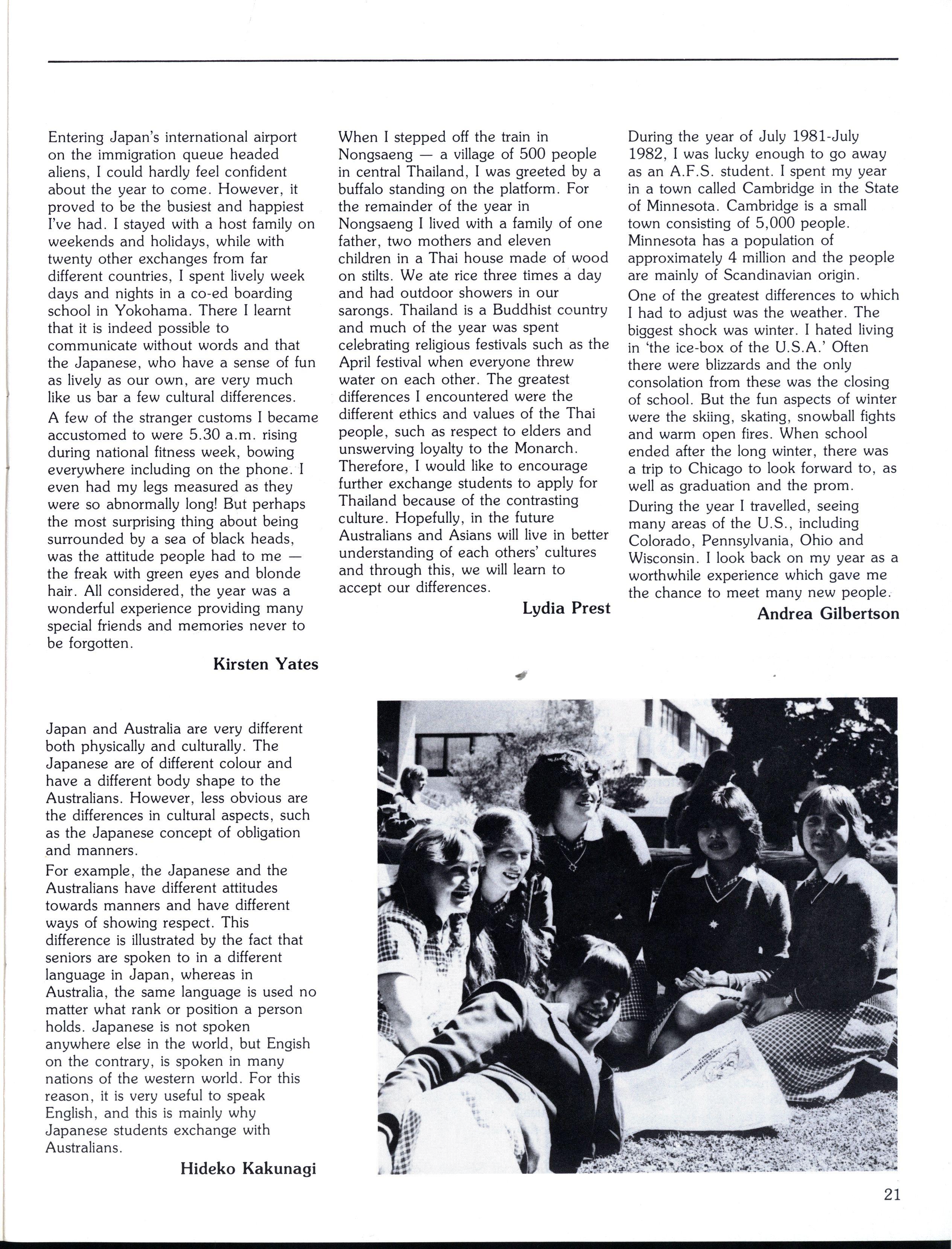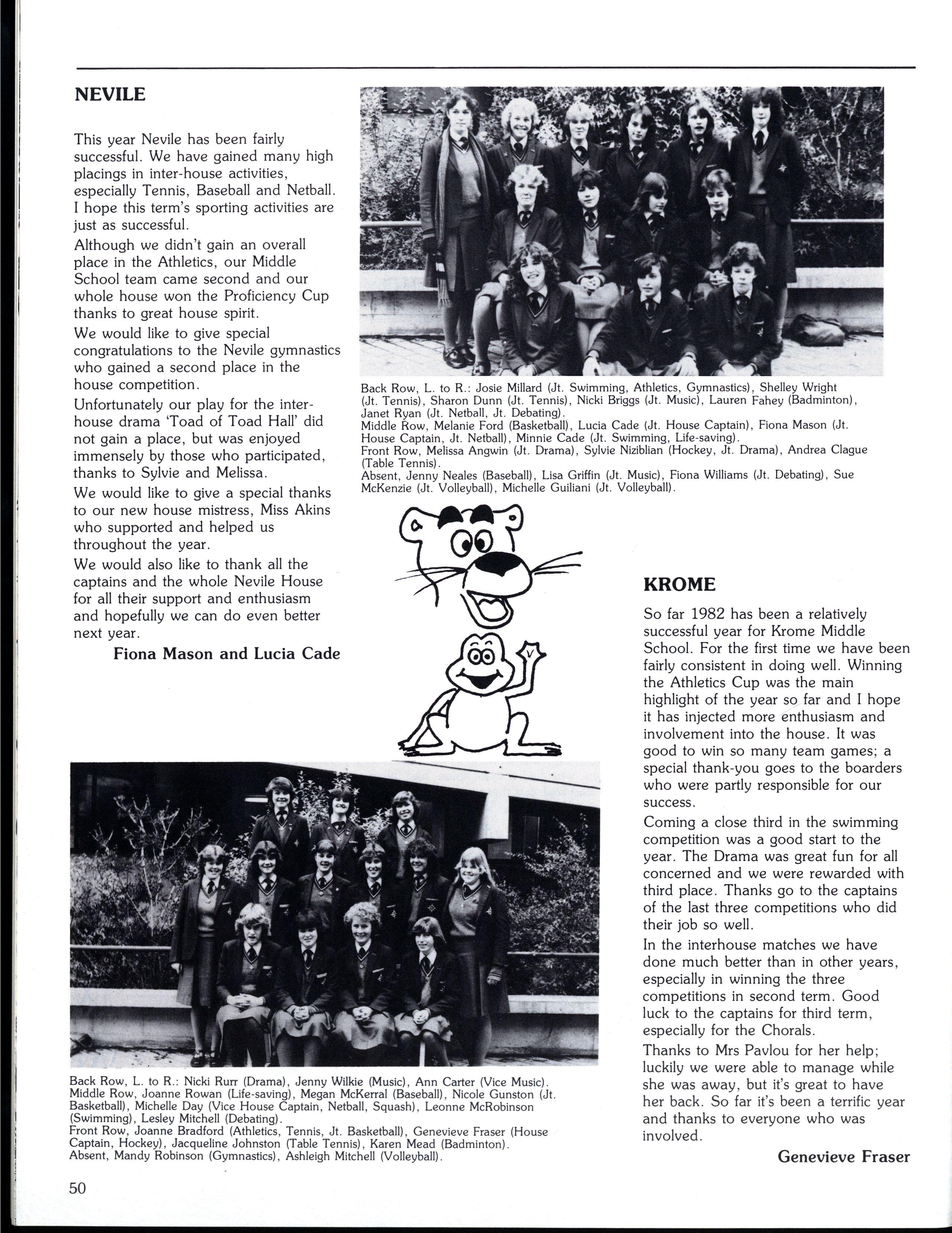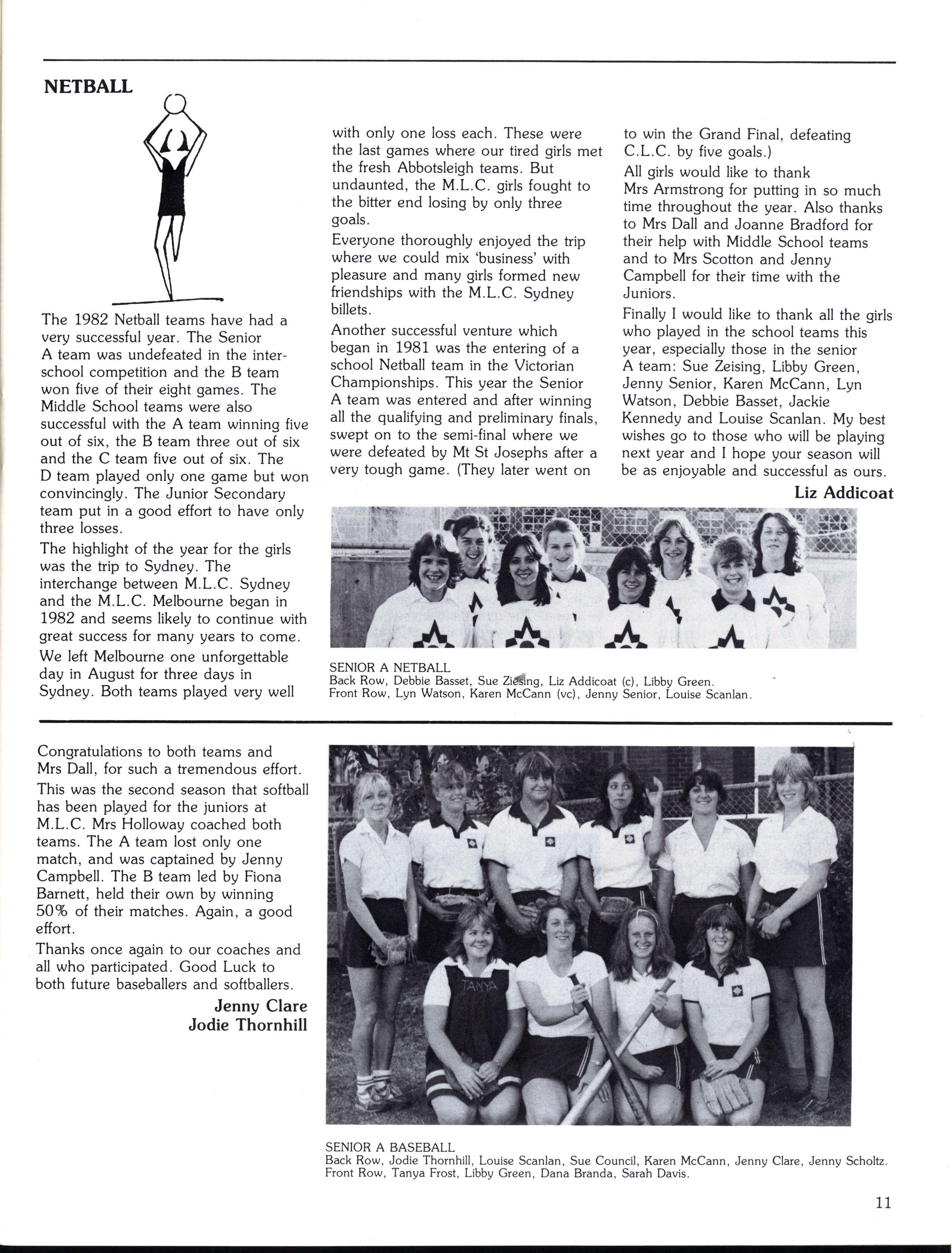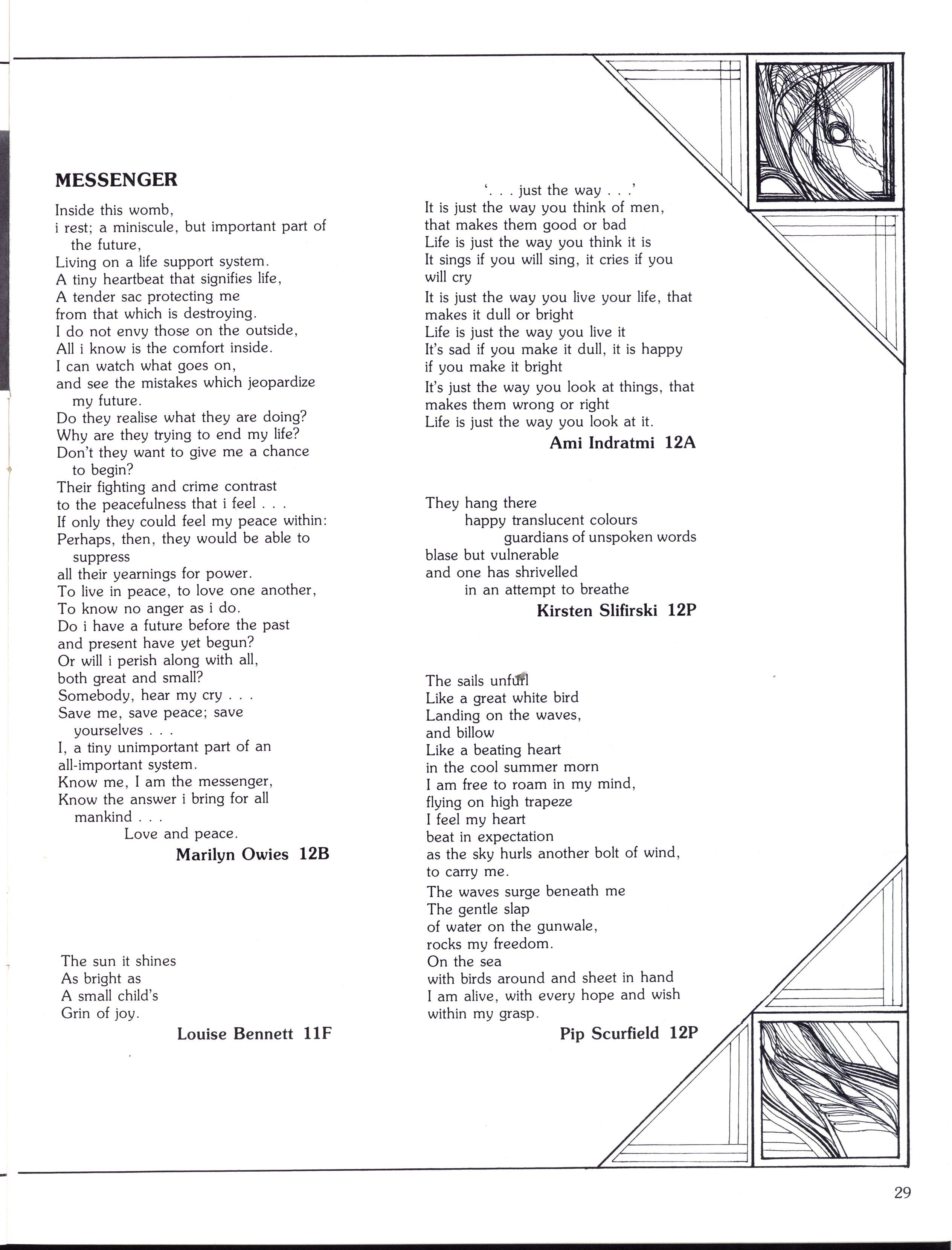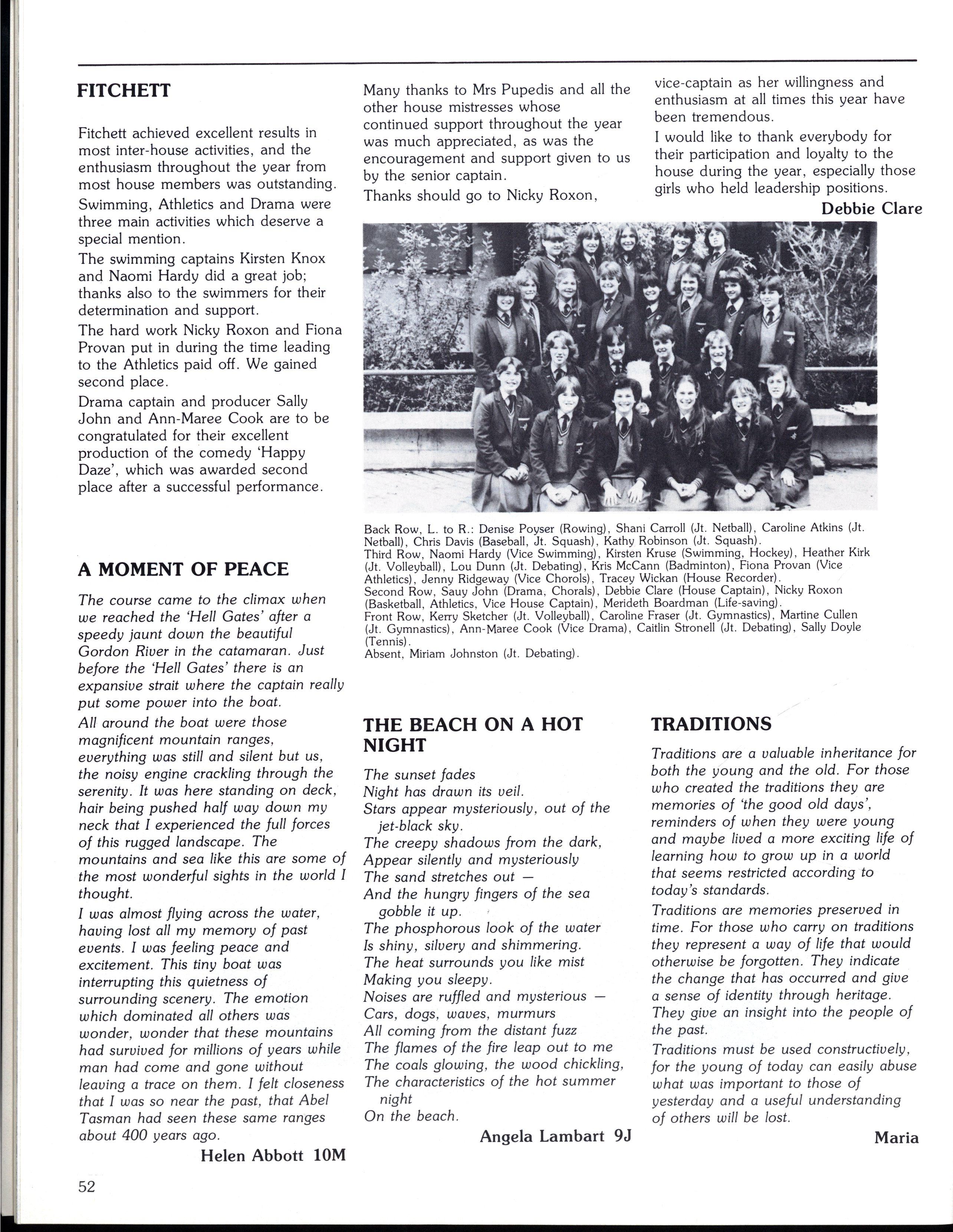 The scholastic, emotional and physical demands of Year 12 are far greater than any of us could ever have contemplated in Year 11. It has been a year, which I believe none of us would ever want to endure again. At times, some of us have felt that we have outgrown our roles of schoolgirls and' prefects. Perhaps, for some of us, the girls we were toward the end of Year 11 were more suited to the roles than we were during this year.