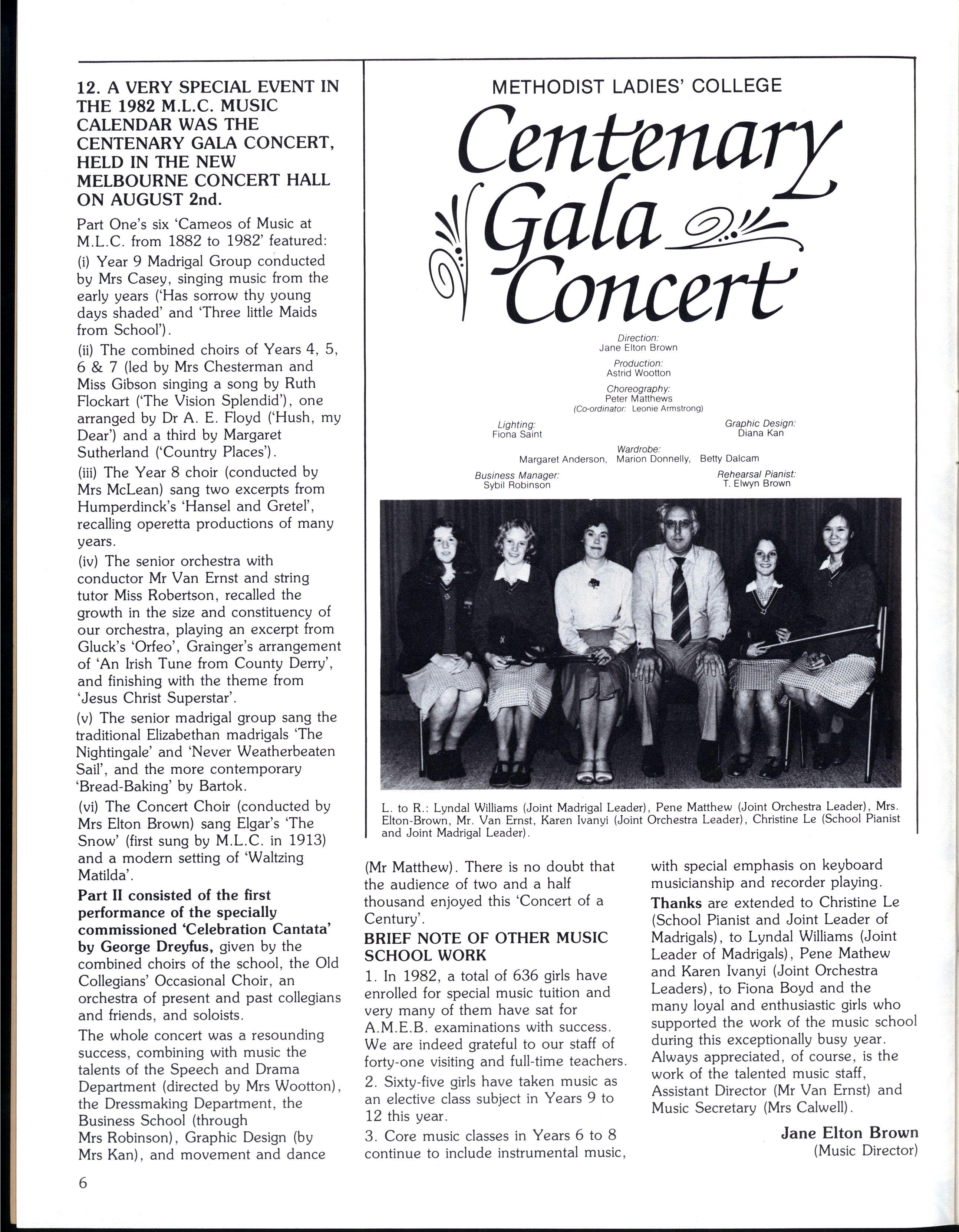 Part One's six 'Cameos of Music at M.L.C. from 1882 to 1982' featured: