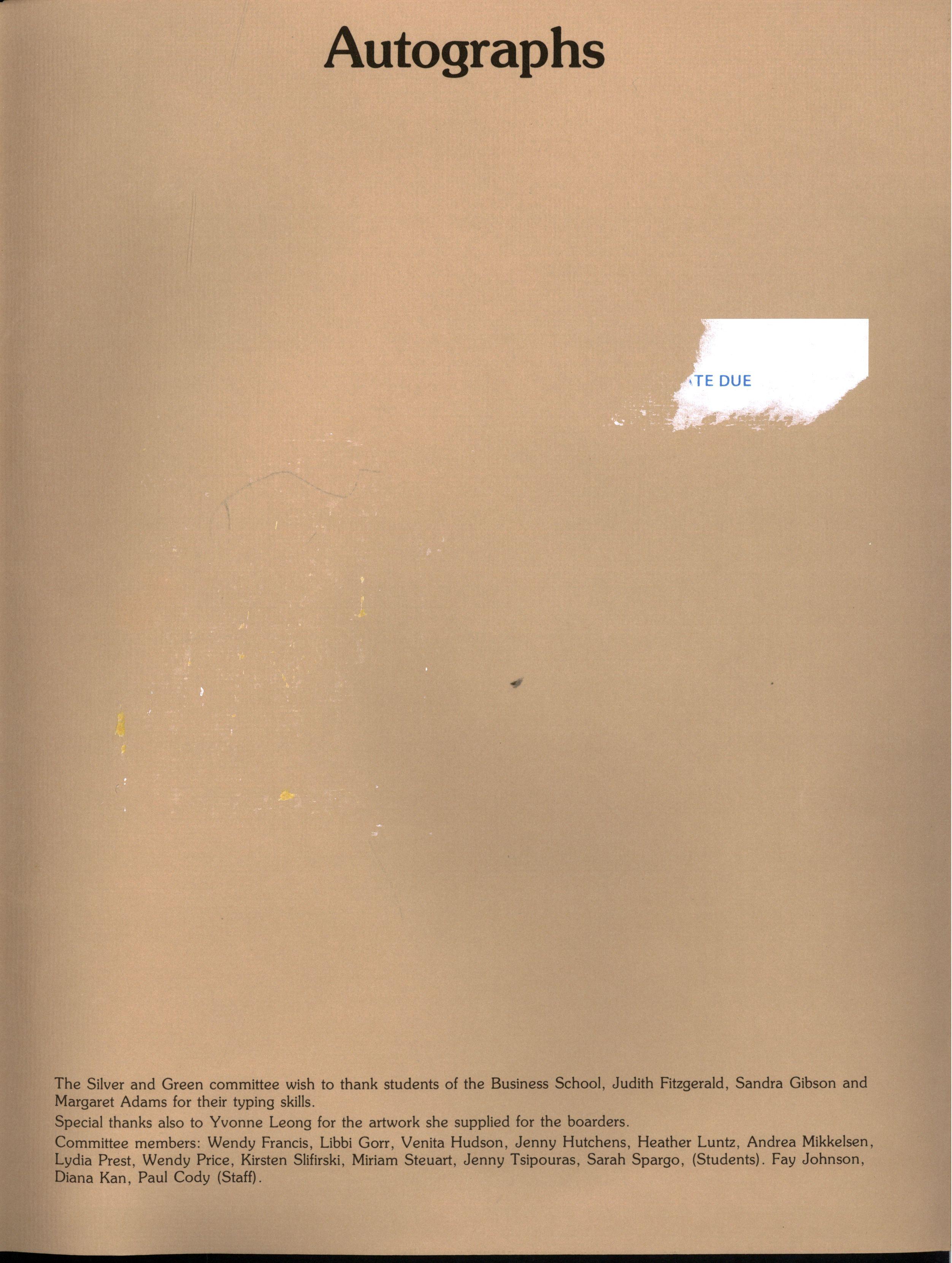 The Silver and Green committee wish to thank students of the Business School, Judith Fitzgerald, Sandra Gibson and Margaret Adams for their typing skills.