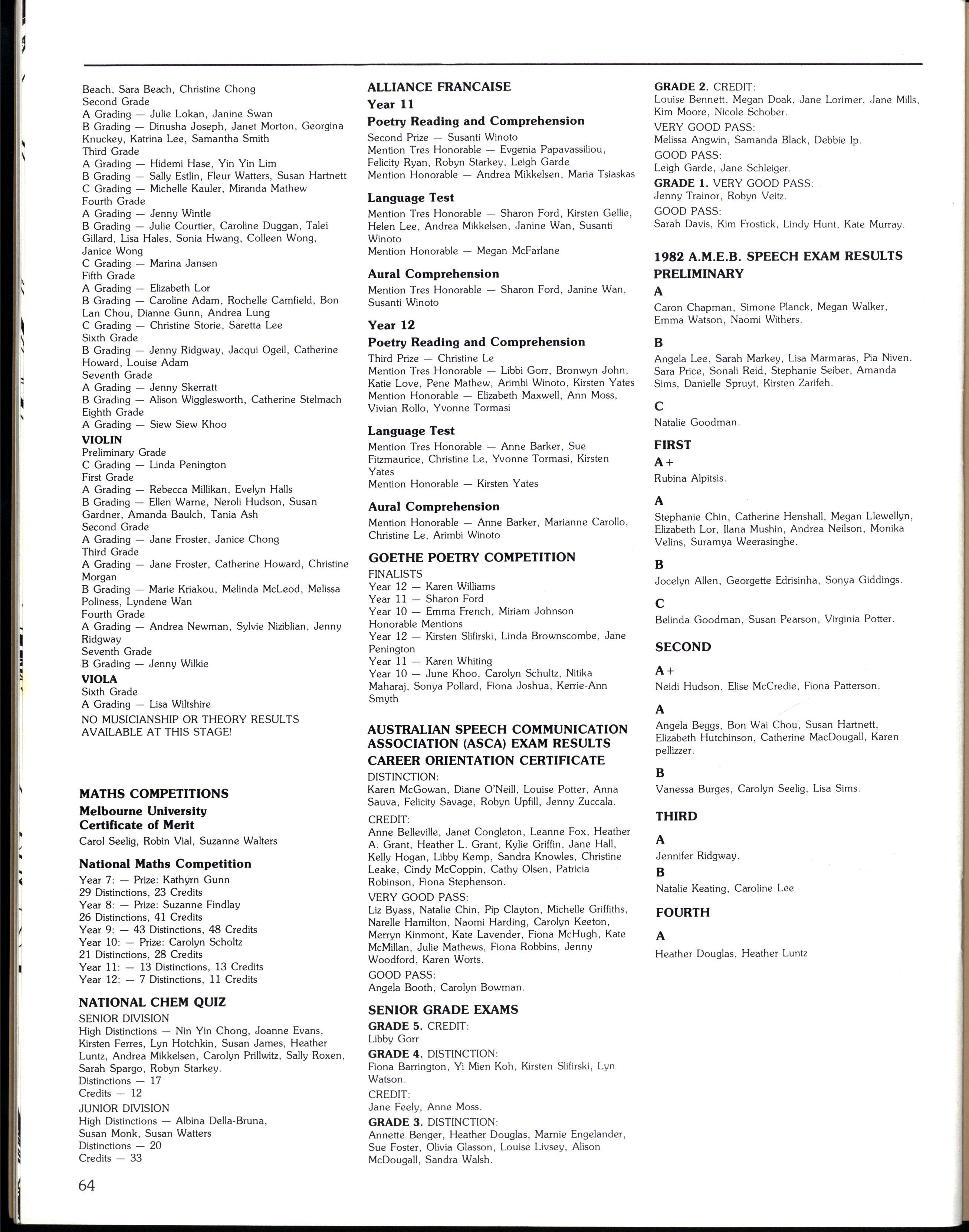 1982 A.M.E.B SPEECH EXAM RESULTS