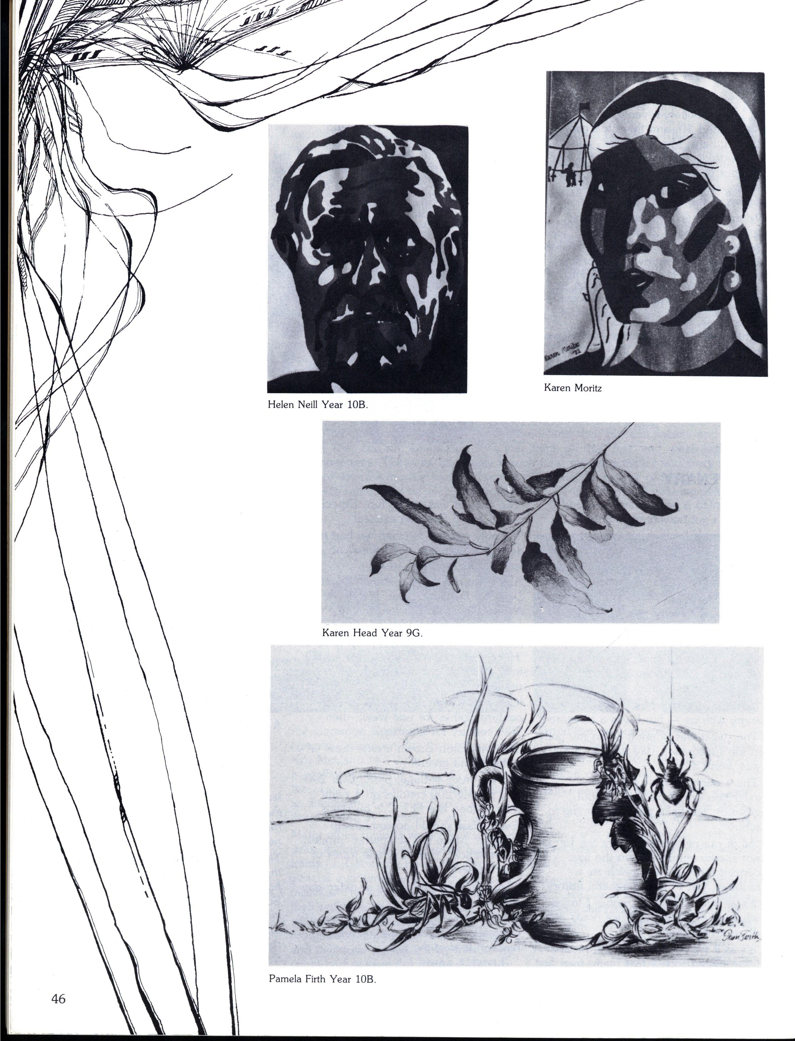 A. If at the end of the time a student comes through the art program developing abilities and a confidence, an appreciation and a love of the subject, then we've won. I'm not necessarily saying we lower our standards I'm saying we have a very effective role to play in teaching. We are not just providers of materials who just go away and do nothing. It will be interesting to see how art changes over the next ten years, and more to the point in our context how art changes in education. In some respects I see there is a new appreciation of art. I think it will be interesting to see whether such things as video art, happenings and environments and lasers are the new media, the new ways of saying things for artists, because I suppose one of the major issues in society today is the throwaway consumer society of constant change and it seems to me that video with its instant replay is a pretty valid medium and truly reflective of society.