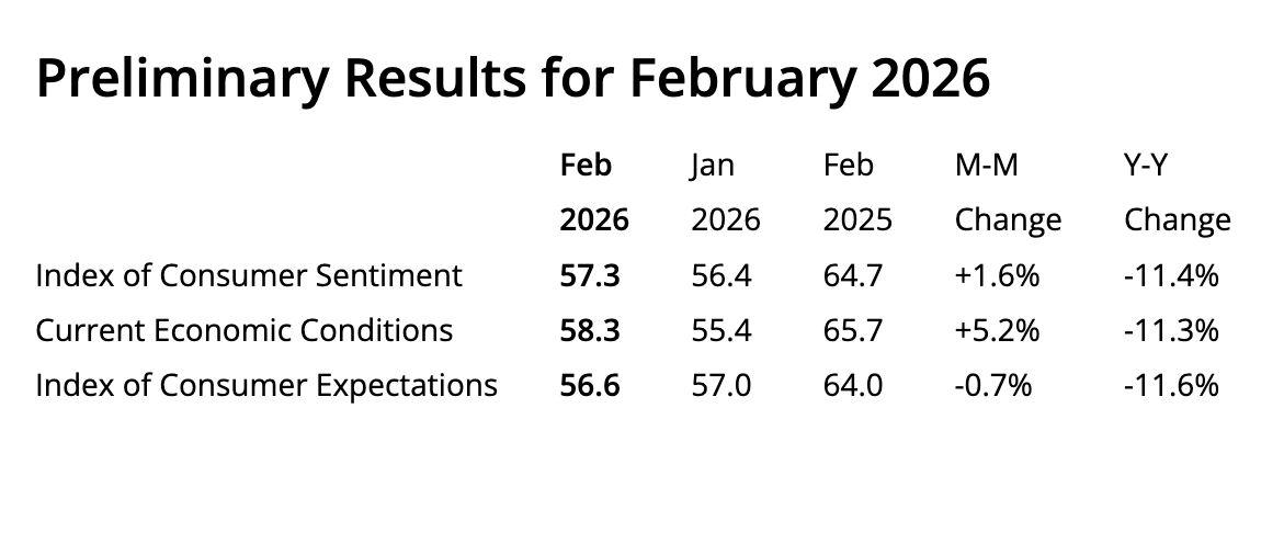圖7:2026 年2 月消費者信心初步結果(密西根大學)