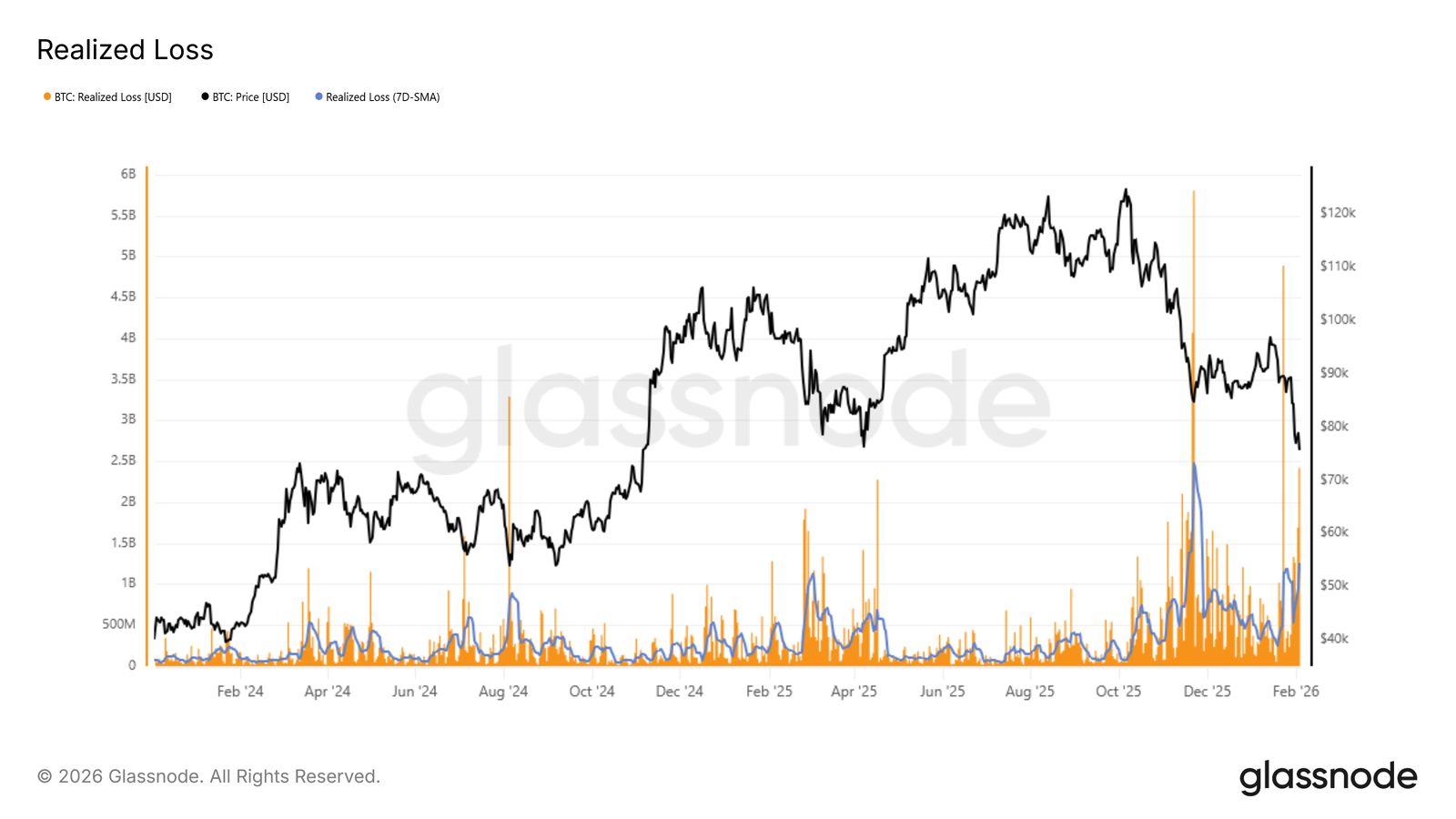 圖3:基於鏈上成本結構的比特幣已實現虧損(資料來源: Glassnode)