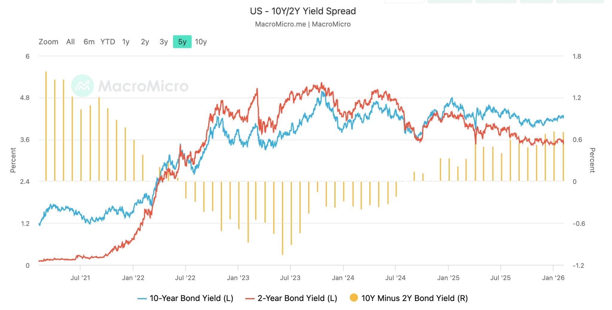 債券市場訊號亦與此趨勢一致。美國公債殖利率曲線在長時間倒掛後重新轉為正斜率,主