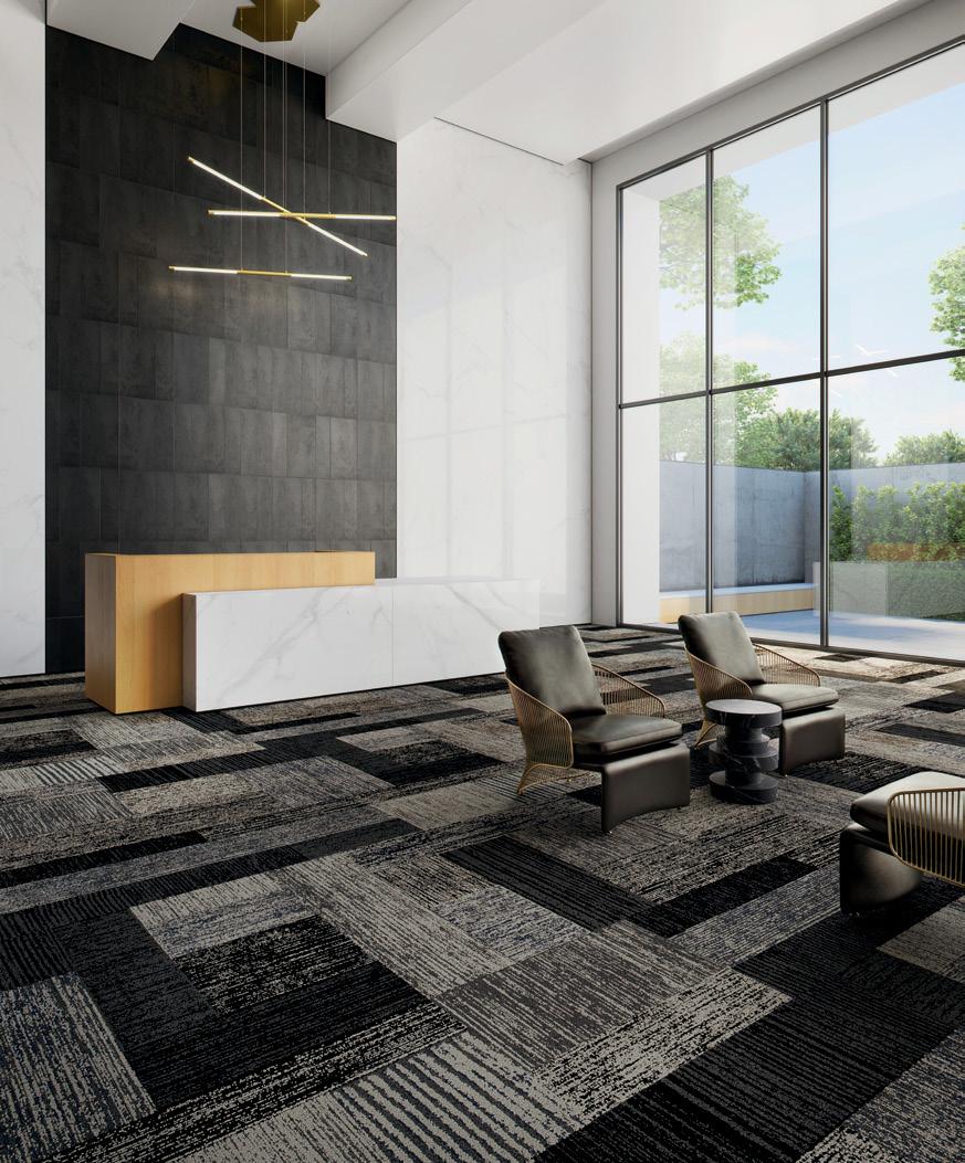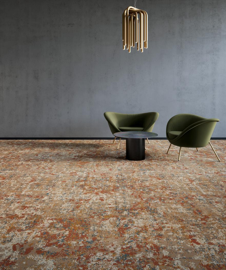 Finding the familiar becomes unexpected. Estrato is a textural study that layers the organic, traditional and transitional. Abstracted botanicals overlay to create serene patterns that infuses calmness and comfort. Designed for corporate, hospitality and living environments, the Estrato Signature Series is a collection of tile and broadloom styles curated and coordinated in multiple constructions to offer flexibility in styling to complement throughout a space. Uncover the boldness of texture and the composition of quietude.