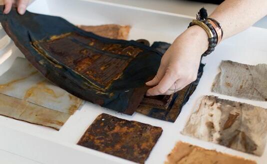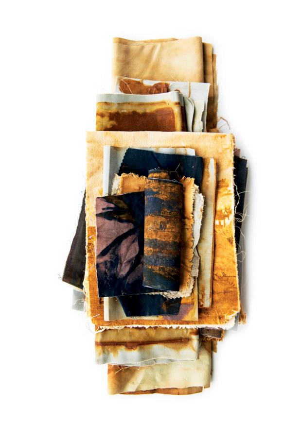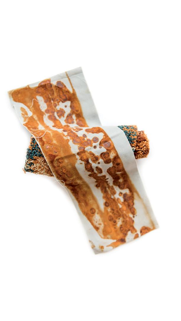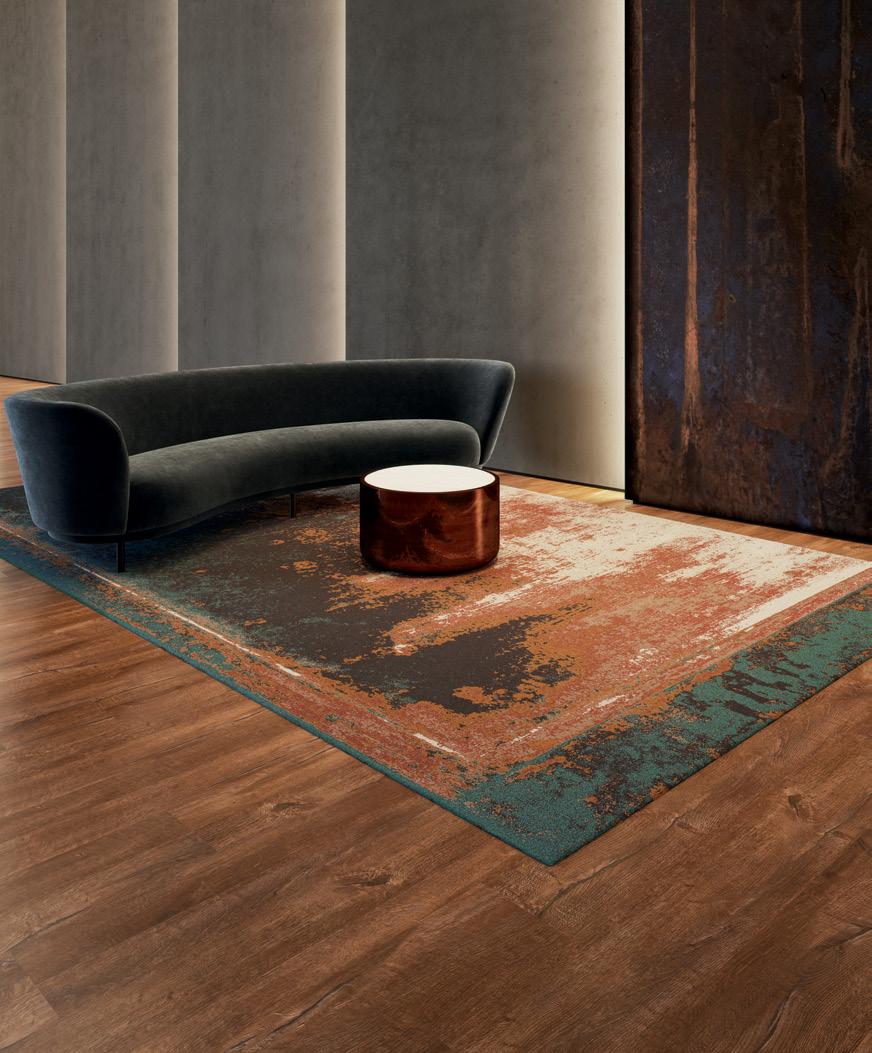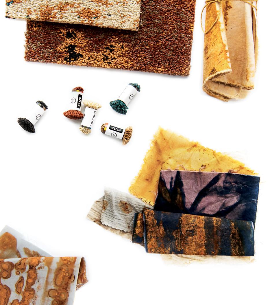 The Patcraft design team explored the effects of oxidation, accelerating the process with textiles and discarded items, to create the Artefact running line collection.