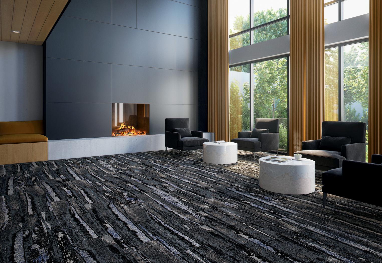 Machine-tufted patterns create precise details for a dimensional aesthetic in multi-level cut or loop patterns. Designed specifically for large, open hospitality public space areas, customize these styles from 240 solution-dyed nylon color choices in our custom design pom box.