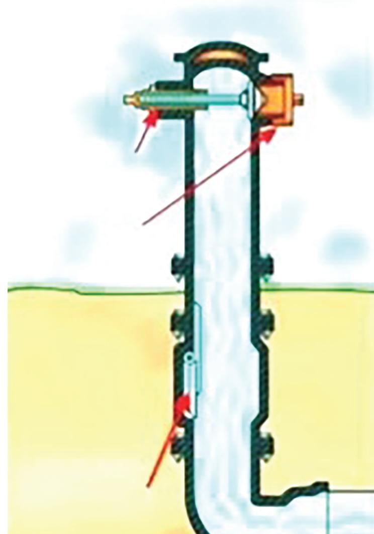 As to the connection to the main water supply pipe, I’d provide a gatetype, shutoff valve. At the bottom of each hydrant, I’d add an excess flow-check valve, so if a hydrant is sheared or its outlet is left open— which probably occurred in Los Angeles—the excess flow-check valve (Figure 3, right) would close. This design guarantees water isn’t spilled,