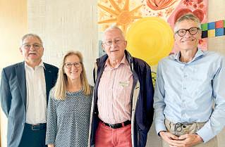 Der«Förderverein Niklausvon Flüe und Dorothee Wyss» hatsichamSamstag zurMitgliederversammlung getroffen. Nach sechsJahrenVorstandsarbeit treten Anne-Elisabeth Cattaneo, KlausOdermattund Karl Vogler zurück.Neu gewähltwurdenMonikaAmstutzaus Kerns, MarcoCattaneo(ehemaligerDirektordes JustinuswerksinFribourg) und Christof Gerigaus Oberdorf.Präsident FranzEnderli wurdefür weiterezweiJahre im Amtbestätigt.NachzehnJahrenAufbauarbeit trittauchGeschäftsführerin DorisHellmüllerauf Ende dieses Jahres zurück.Die Suchenacheiner Nachfolgeist im Gange. Aufdem Bild vonlinks:Franz Enderli, Monika Amstutz, KlausOdermattund Karl Vogler.