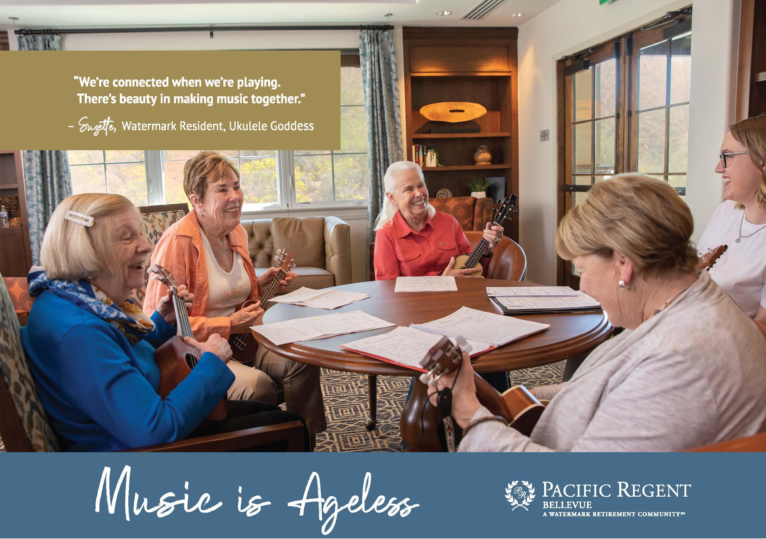 Residents created a ukulele club. There's Adrienne, who first played in Hawaii. And Judy, eager to try a new instrument. Some never played a note before. In this club, talent is optional; good cheer universal.