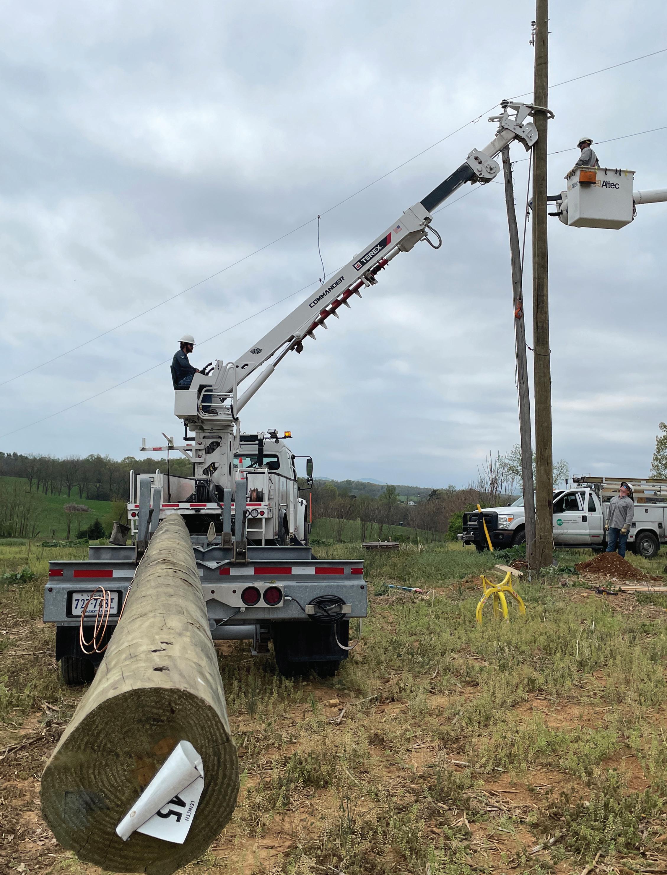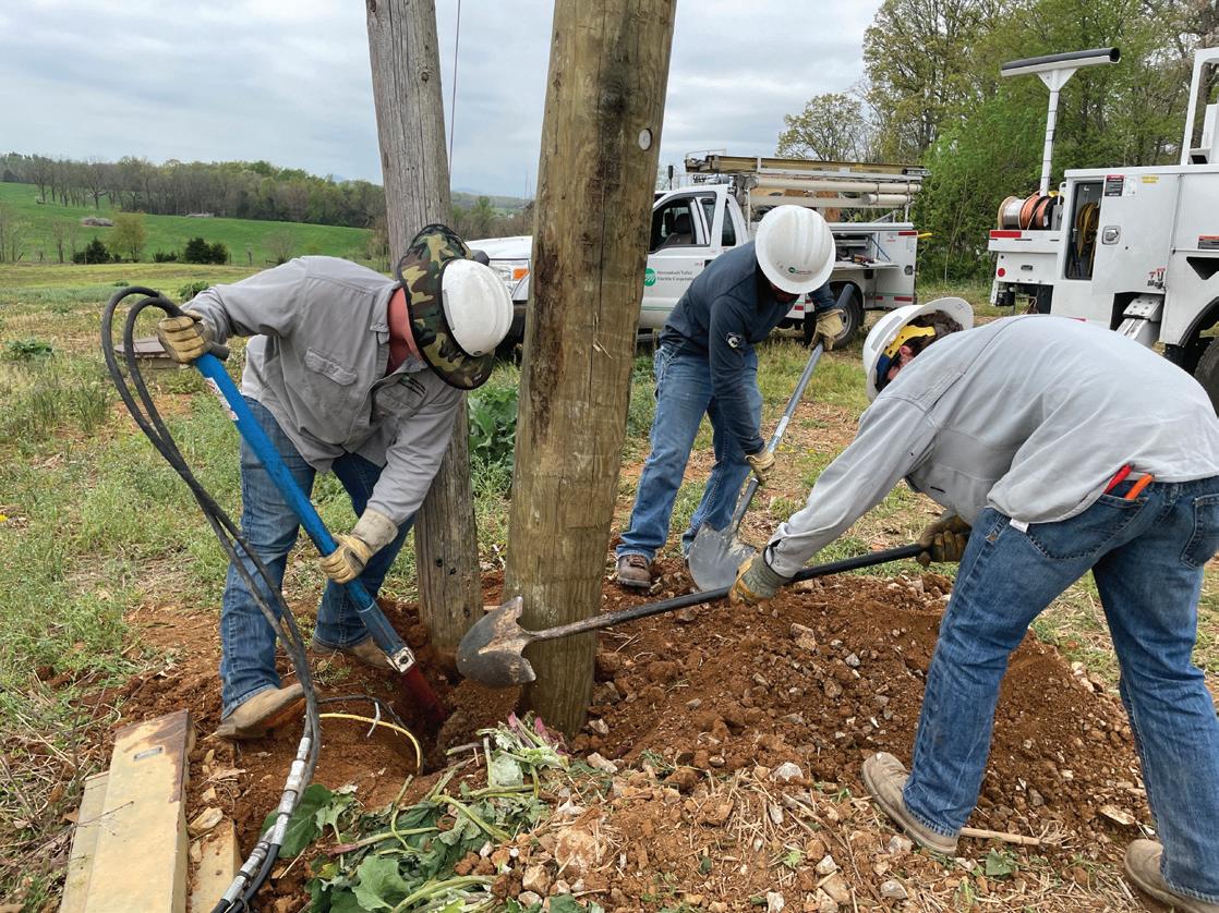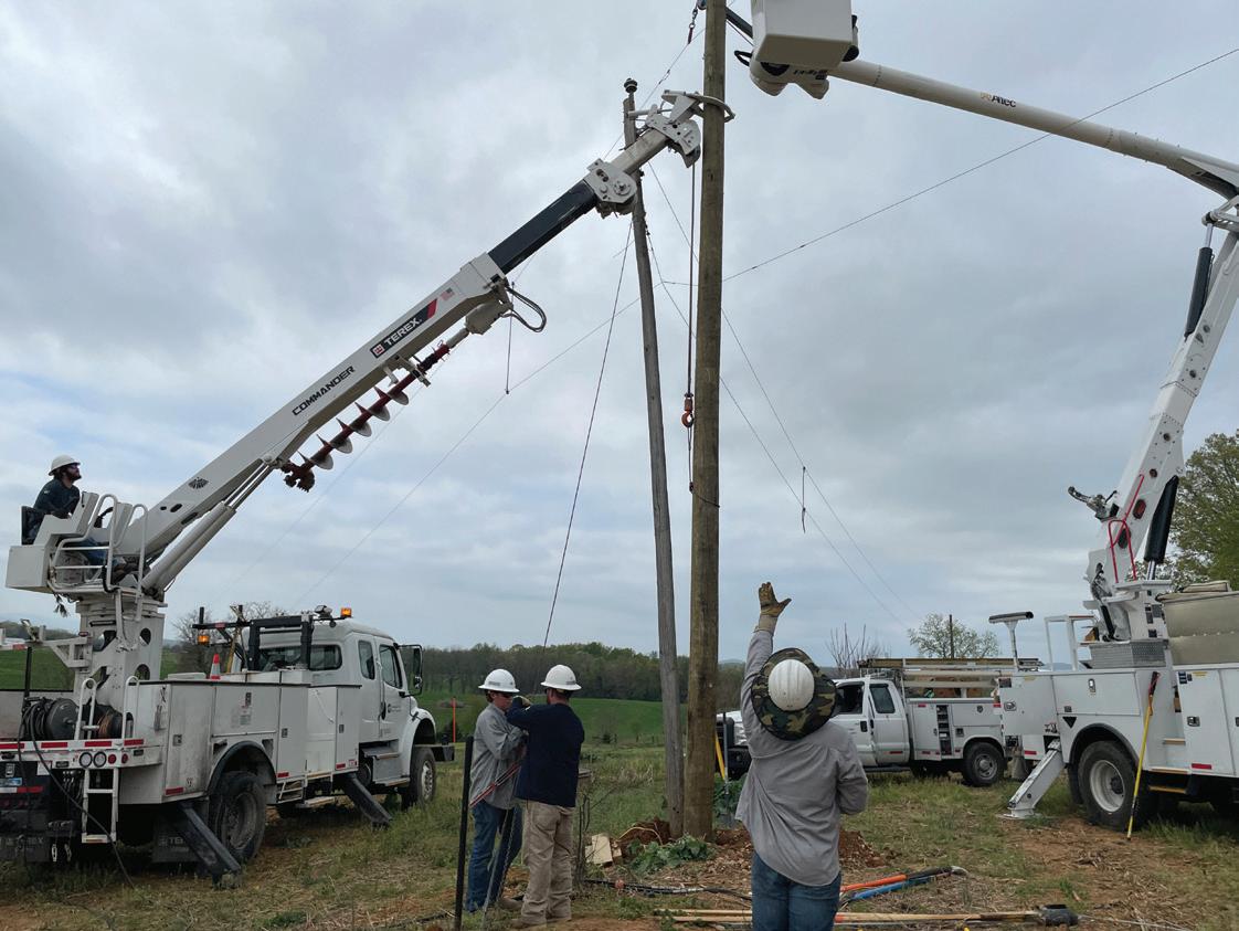 “I like changing poles that we’re going to have to climb one day. When you go back, most of the time it should be a good, sturdy pole for you,” says Cole Shaffer, a first-class lineman in Mt. Jackson. “It’s crucial to the system, especially in the backwood territory where you’re climbing all the time. You don’t want to be climbing a pole that’s been there for 80 years.”