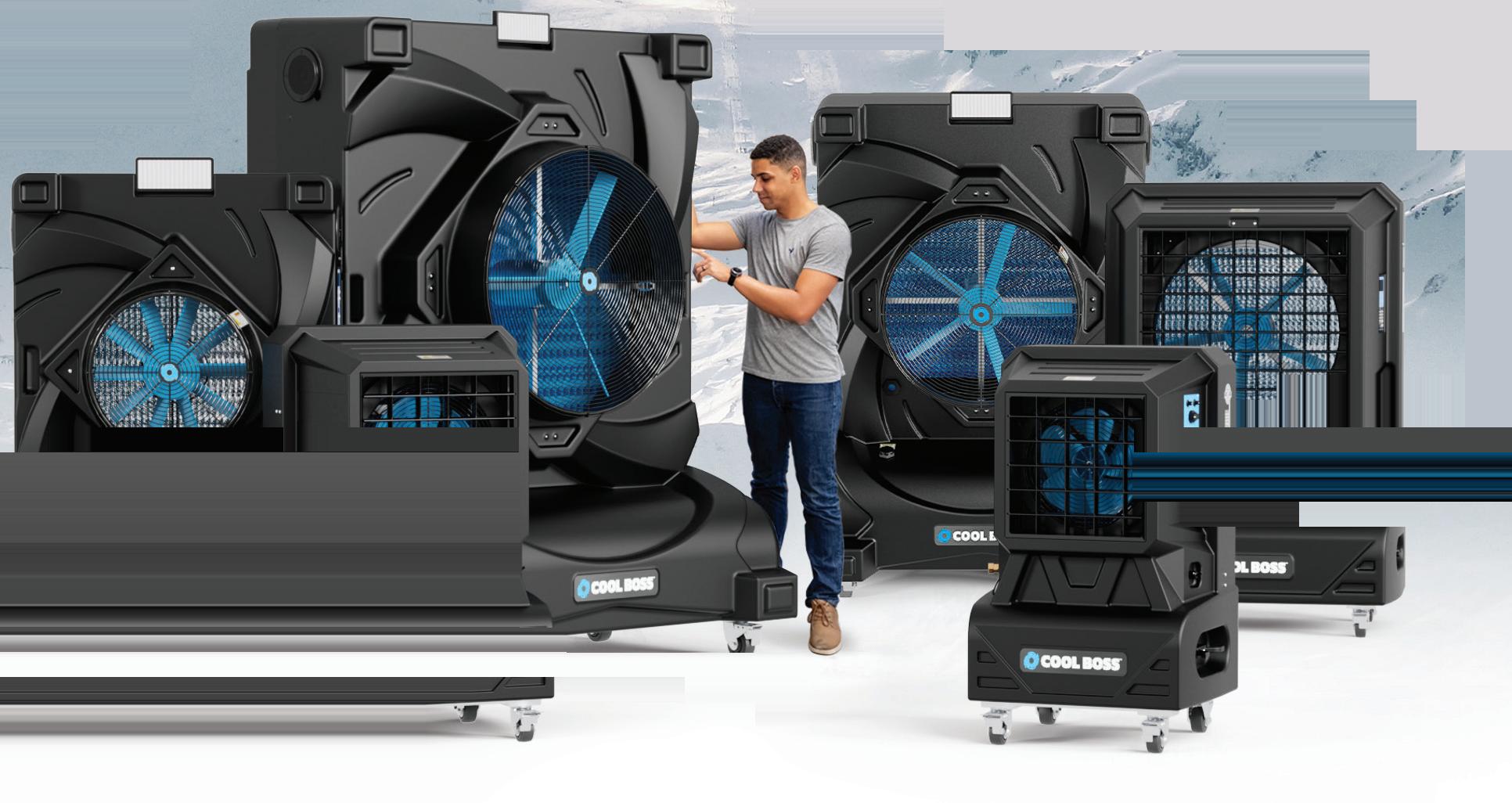 ey’re extremely versatile as they come in a range of sizes and con gurations to match the cooling needed in nearly any work area. Fan-driven, evaporative coolers blow chilled air across a shop; plugging in multiple coolers amplifies the cool-down e ect as needed.