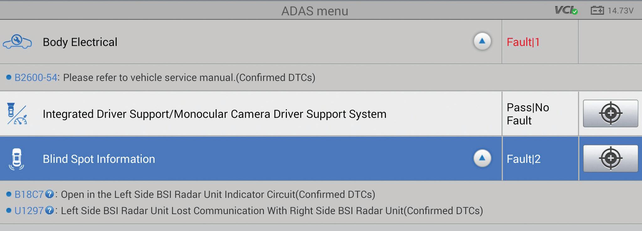 Once the technician corrected the harness connections, reconnecting each module properly, the lane-change assist system immediately resumed normal communication (Figure 5). With the communication error resolved, he successfully completed programming of the replacement module and calibration of the lane-change assist system, which returned the vehicle’s ADAS to optimal functionality.