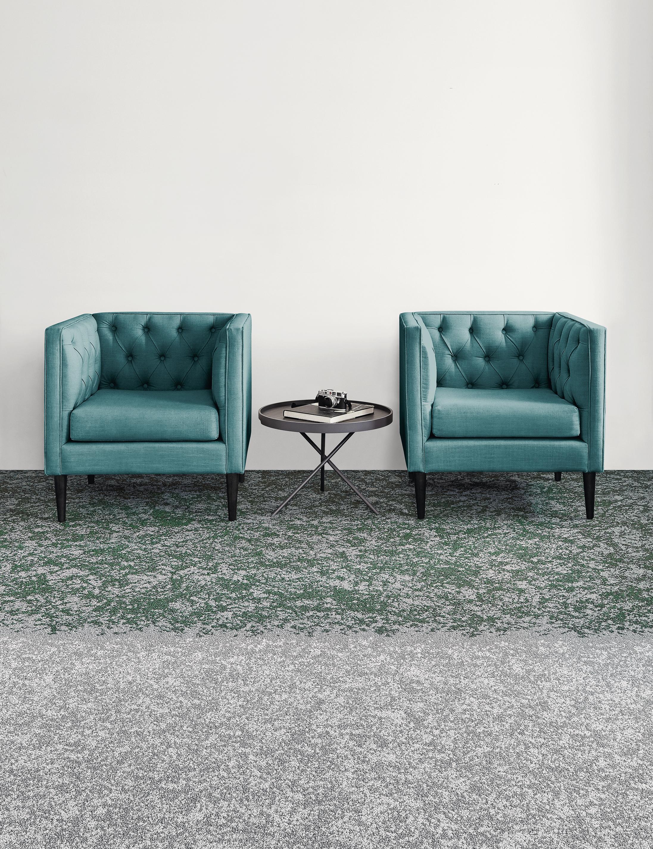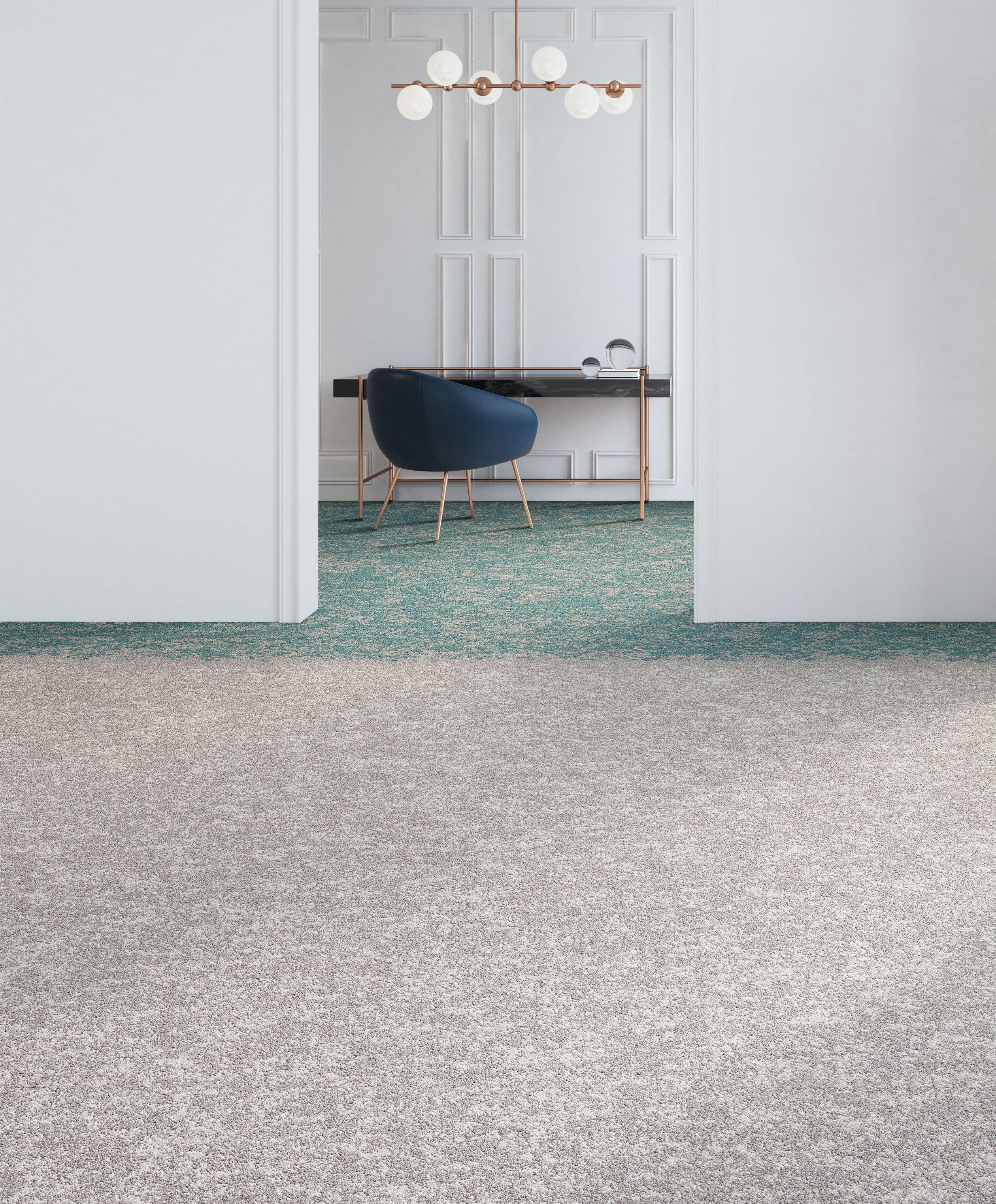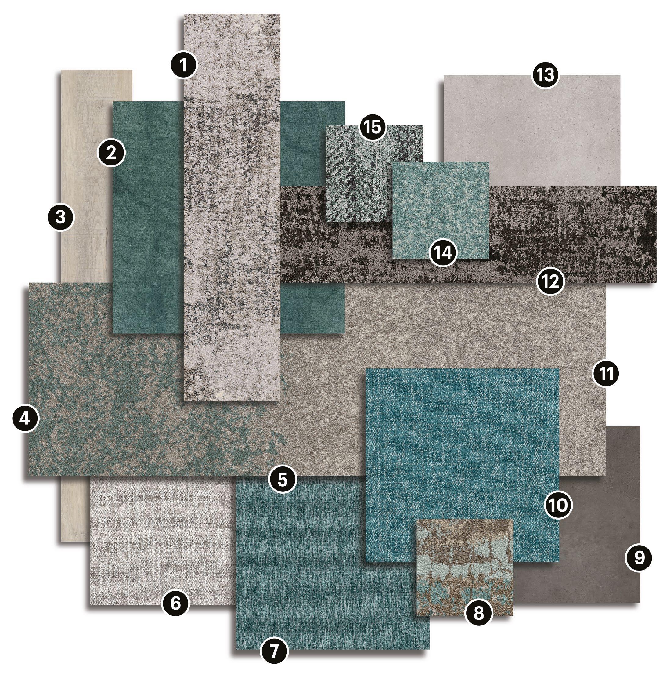 A fluid interplay of cool clarity and grounded depth. Soft transitions move through tones of mint, lake, and aqua, creating a sense of gentle movement and atmospheric calm. Light tonal shifts extend into airy notes of silica, arctic, and desert, offering a refined brightness. Colour emerges through nuanced gradations and layered textures, forming a harmonious composition that feels fresh, balanced, and subtly immersive – ideal for environments seeking a calm yet contemporary atmosphere.