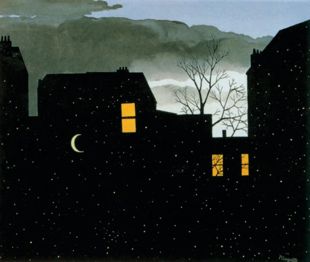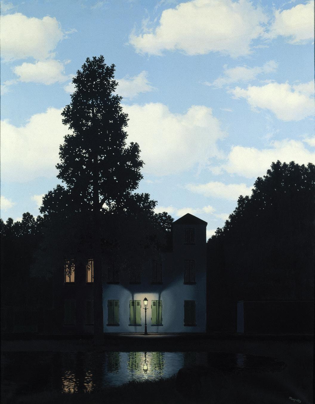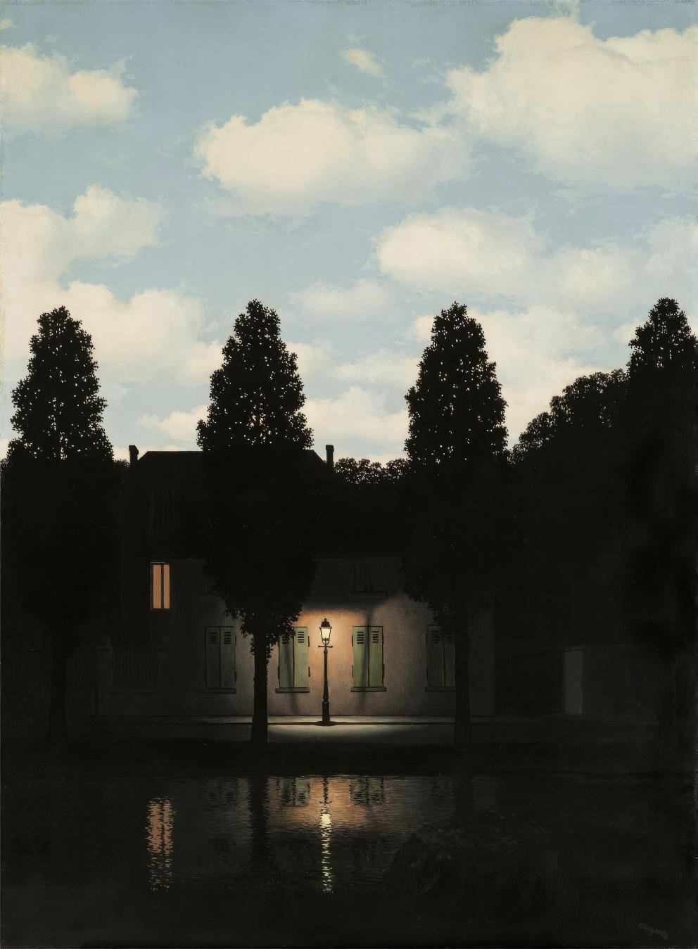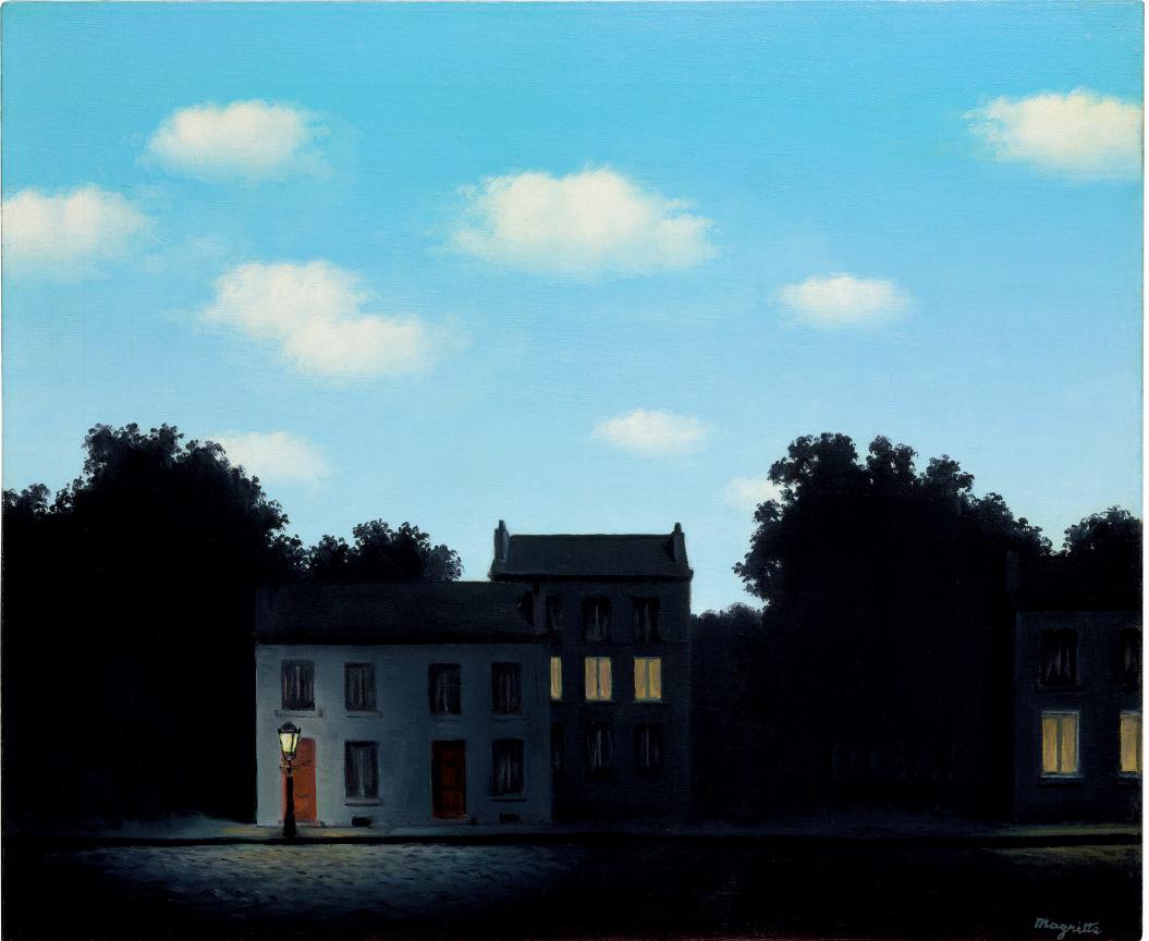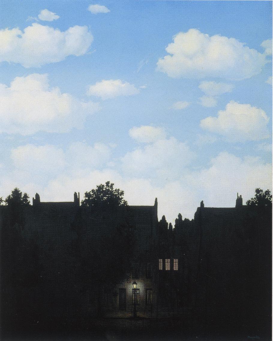 “After I had painted L’empire des lumières, I got the idea that night and day exist together, that they are one. This is reasonable, or at the very least it’s in keeping with our knowledge: in the world night always exists at the same time as day. (Just as sadness always exists in some people at the same time as happiness in others). But such ideas are not poetic. What is poetic is the visible image of the picture.”
