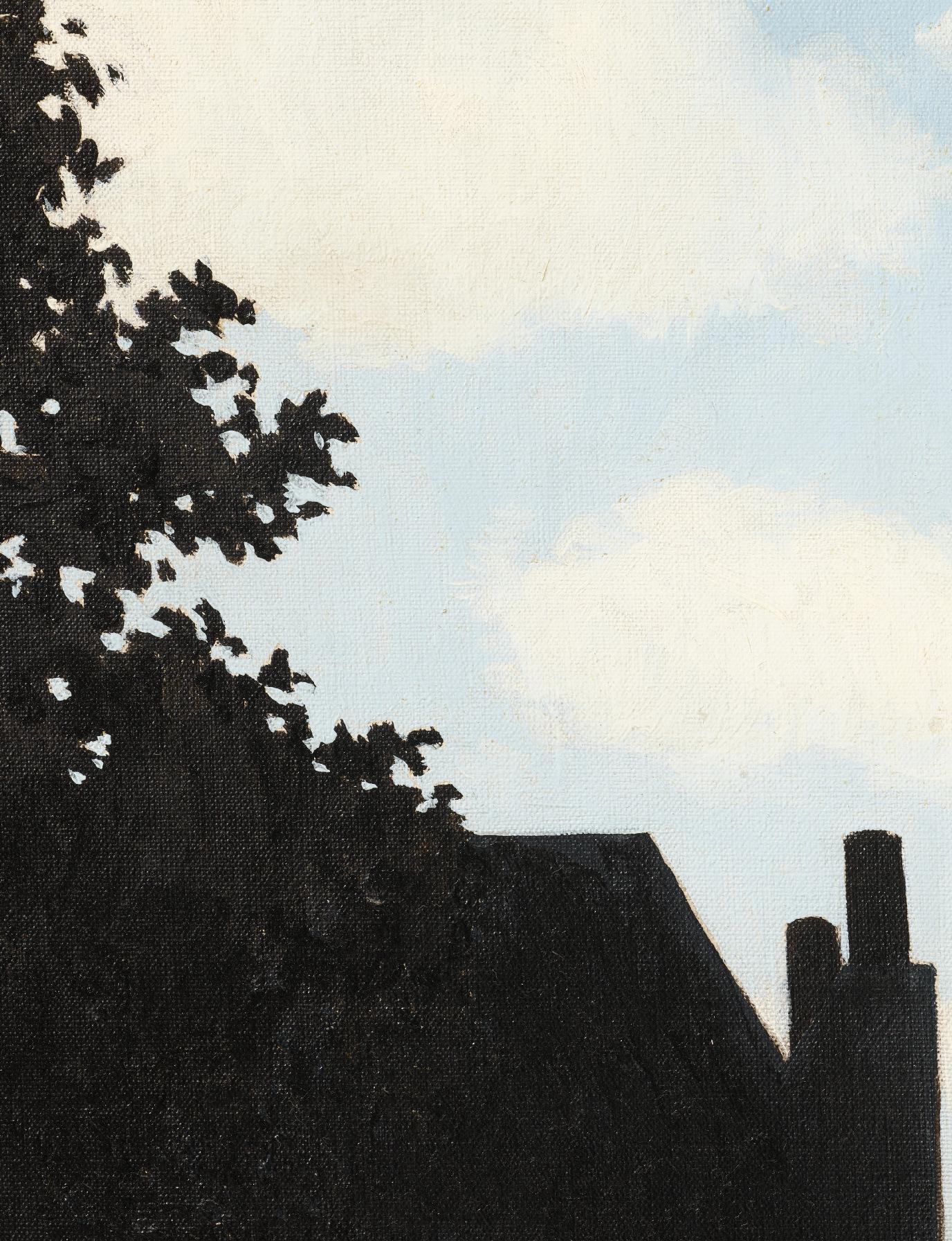 The second version of the L’empire des lumières theme (Sylvester, no. 723; The Museum of Modern Art, New York) was painted in June 1950, on a larger sized canvas, allowing a broader array of building façades to populate the scene. Though Magritte told Iolas he had “revealed the full strength of the idea” in this composition, he continued to revisit the L’empire des lumières motif multiple times over the course of the following fifteen years, in what may be considered Magritte’s only exploration of working in series (quoted in D. Sylvester, op. cit., 1993, vol. III, p. 157). In each iteration he made subtle alterations, experimenting with the particulars of the scene, amplifying different aspects of the landscape, subtly adjusting the colors of the sky or the density of the clouds, even expanding the sense of space and recession within the picture. Different architectural styles were portrayed in some versions, providing unexpected hints as to the location of the setting, or the socio-economic status of the residents, while the towering trees that surround the building began to take on a distinct sense of individuality and character from one canvas to the next. However, it was the extraordinary duality of night and day that remained at the heart of the L’empire des lumières paintings, a phenomenon to which the viewer appears to be the only witness.