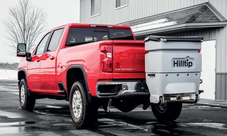 The IceStriker 550SS TR stainless steel spreader provides durable, corrosionfree performance for tractors and loaders. Its 0.55-cu.-yd. hopper and 4.5” auger ensure smooth, even spreading of salt, sand, gravel, and mixes. www.hilltipna.com/en