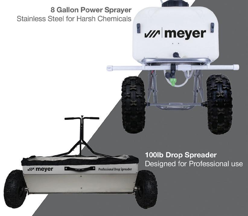 Tackle any season with Meyer’s 8-Gallon Power Sprayer and 100-lb. Drop Spreader. The DeWalt battery-powered sprayer makes applying liquid treatments easy year-round, while the stainless-steel drop spreader delivers precise, even coverage for ice melt or seed—protecting landscapes and ensuring professional, accurate results on every job. www.meyerproducts.com