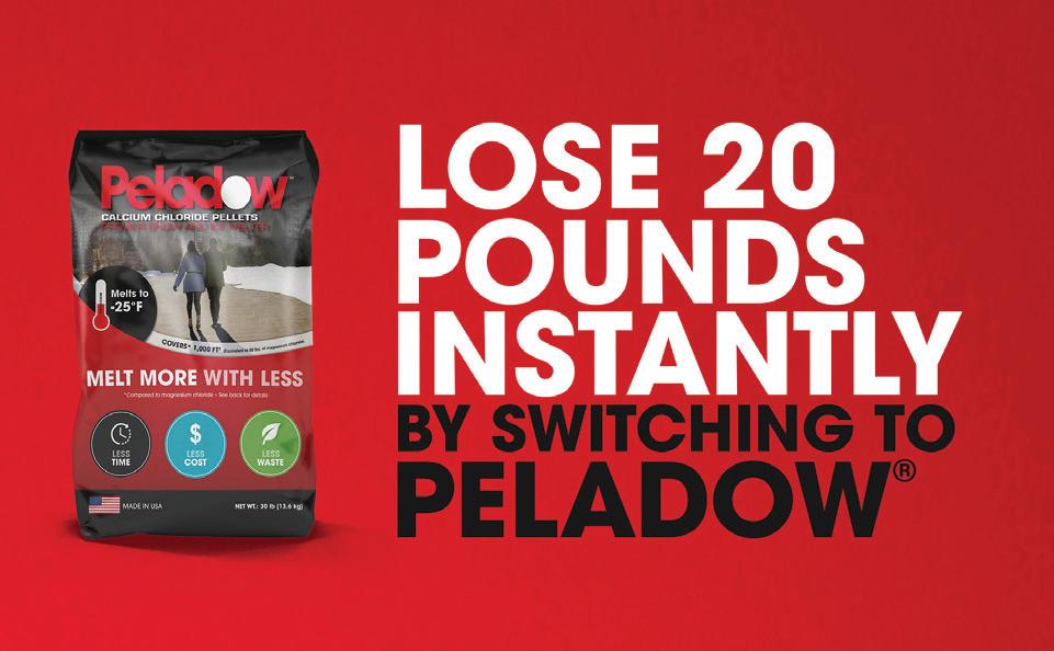 PELADOW Calcium Chloride Pellets work faster so you can use less! Switch to PELADOW instead of magnesium chloride to melt more with less time, cost and waste. A 30-lb. bag will achieve the same or better coverage than a 50-lb. bag of magnesium chloride. www.oxycalciumchloride.com