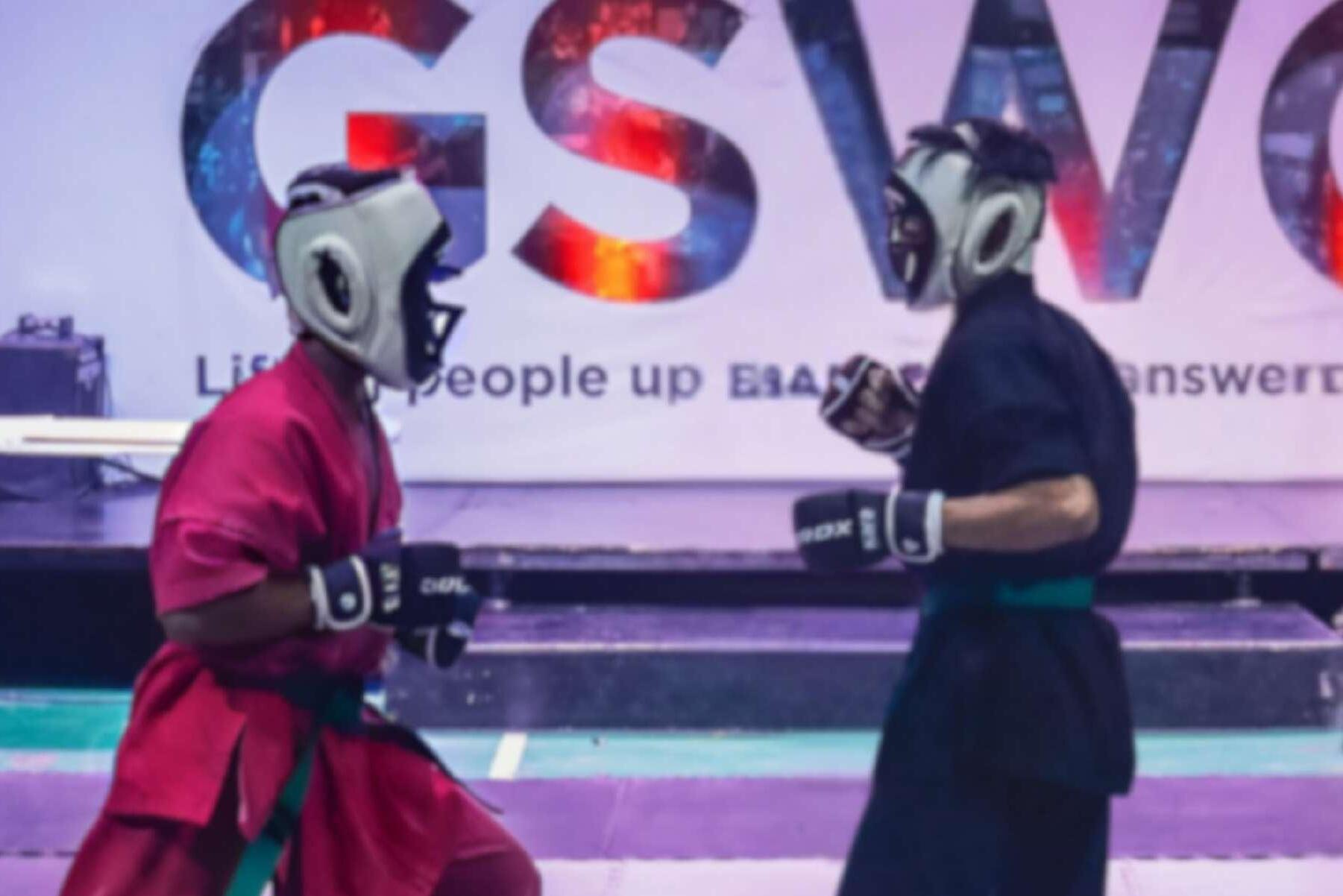The bell hits, as both fighters sprints towards each other, exchanging in a clash of fists, pushing each other to their limit.