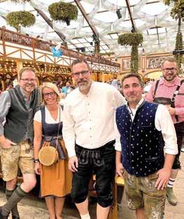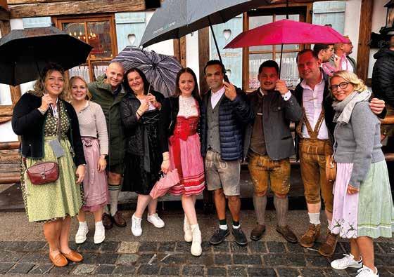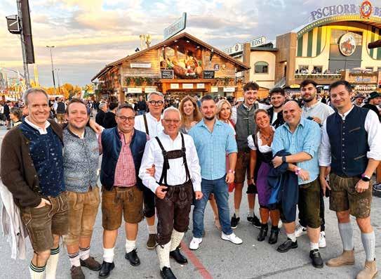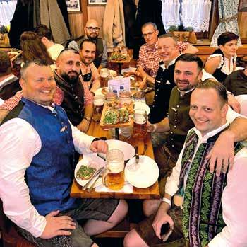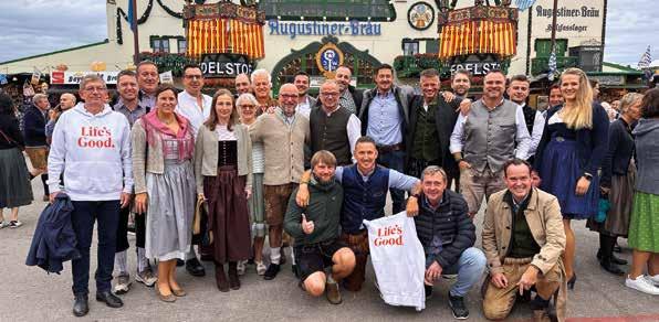 „Life is good“ after a Brezl und a Maß: Das LG-Team mit Partnern ist auf dem Weg zur alten Wiesn.