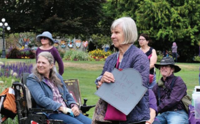 At one point, members in the crowd who had lost a loved one due to the crisis lay on the legislature steps. They covered them, painting a stark picture beneath the Canadian flag.