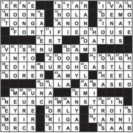 66. "You don't say!" 67. Rendezvous 68. Girder 69. Hall of famer Roush Down