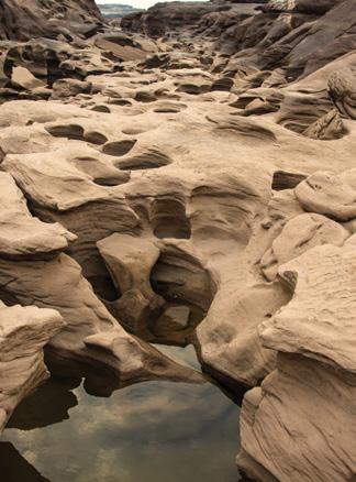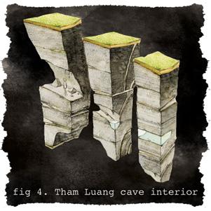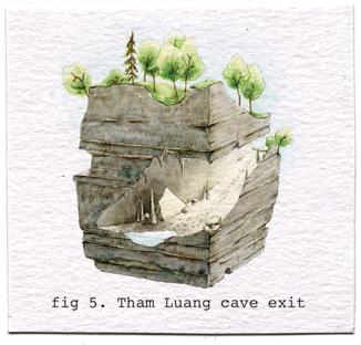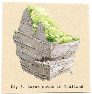 The mid-section opening in this illustration, which depicts Thai mountains, represents features of a karst landscape, a significant geographical feature in All Thirteen