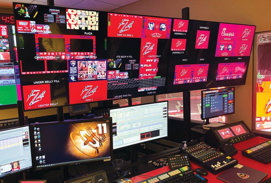 To control all this screen area, the control room was upgraded around a Ross Video Xpress Tessera One content management system powered by NovaStar processors. (The existing Ross Vision switcher remained.) With the renovation, the Panthers also made the move to ST 2100, because it provided the “flexibility to scale video and provide content autonomy,” Masino said.