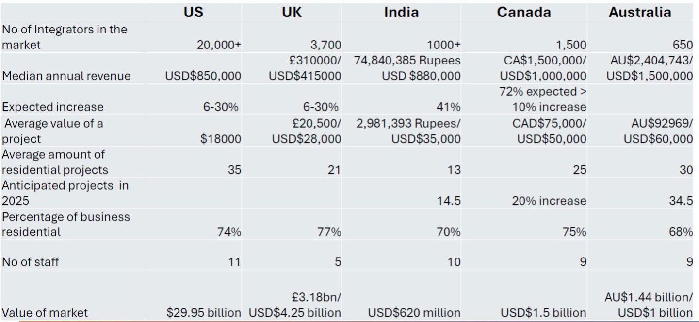 This comparative analysis of the CEDIA market research reports highlights the unique attributes, challenges, and growth opportunities in the home technology industry across Australia, Canada, India, the U.K., and the U.S. With many CEDIA members operating across multiple countries, it’s key for them to understand these insights so that they can better strategize.