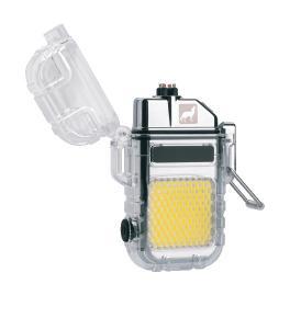 Schwarzwolf electrical rechargeable lighter with a COB flashlight. The lighter works on the basis of electric discharge instead of a flame. The flashlight has a three different modes of lighting. It is charded via a USB cable that is included in the package. The charging time of lighter is 1–2 hours and full lighter lasts approximately one week or after 100–200 sparks. Packed in a gift box.
