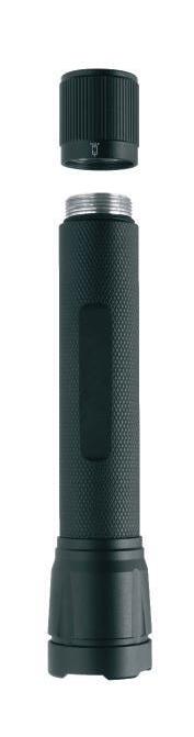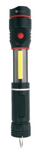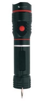Schwarzwolf outdoor metal flashlight. It includes Cree XPE diode and extending COB diode that allows very intensive lighting. At the end of the flashlight is magnet and hook for hanging. Packed in a gift box.