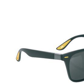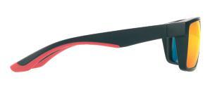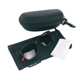 Polarized Schwarzwolf sunglasses. The sunglasses frame and arms are black with red details on both arms with metalic hinges decorated with Schwarzwolf logo. Polarized glasses reduce unpleasant glare and eye fatigue. They have black lenses with UV400 protection suitable for outdoor activities and sports. Comes in a black microfibre pouch and a practical hard black case with a zipper. Includes a white microfibre cleaning cloth suitable for sublimation. Packed in a gift box. From 500 pieces, we offer the option of rubber design elements in your own Pantone color or to make them entirely from RPET material.