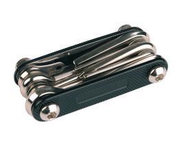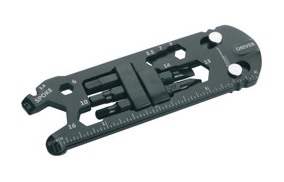 Multifunctional Schwarzwolf keychain contains 10 tools: Phillips head screwdriver, head screwdriver, spanner (4 sizes), spokes key (2 sizes), magnet and carabiner. Comes in handy especially when you haven´t got a tool box at your disposal. Packed in a gift box.