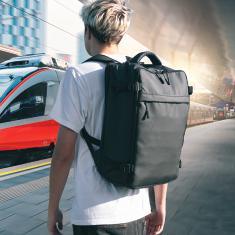 Schwarzwolf 2in1 fleece travel blanket that can be used as a blanket or folded into a cover made of the same material and turned it into a comfortable pillow. The blanket is made in dark gray and can be used during your travels or packed as a companion during camping. The cover for the folded blanket includes a carabiner for attaching to your luggage.