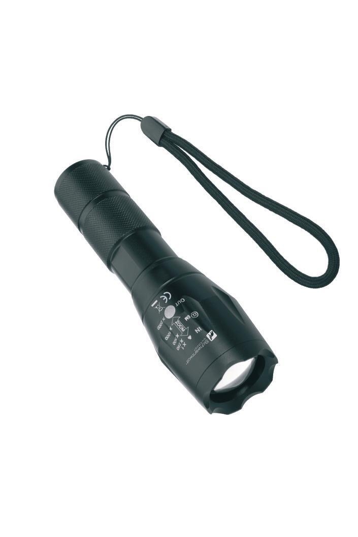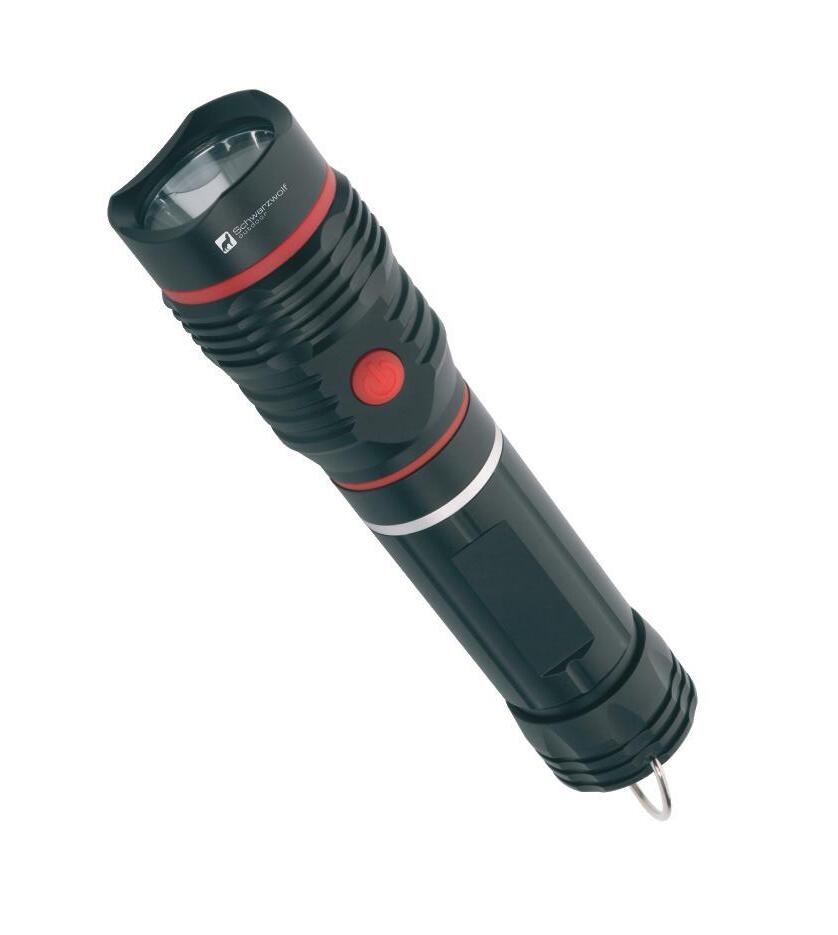Schwarzwolf rechargeable flashlight with a wrist strap, that can be also used as a powerbank for emergency charging of your phone with output DC 5V/1A. It contains 5W XPG diode. It has 3 modes of lighting: strong, flashing and SOS. If you press the button longer you can switch on a dimmer light. The flashlight offers a possibility to change zoom and includes charging indicator light. Comes with a rechargeable 3.7V Lithium battery with 2000mAh capacity and USB-C recharging cable. The charging time of battery is 3 hours, discharging time 4,5 hours.