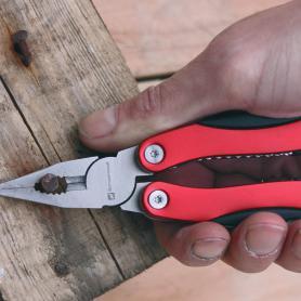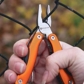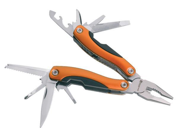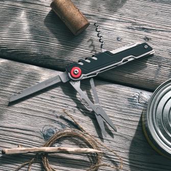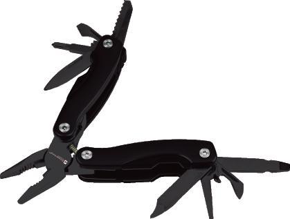 Schwarzwolf multitool contains 11 kinds of tools – knife, beer opener, can opener, pliers, splitters, saw, screwdriver, Phillips screwdriver, file, stripping tool. The tool set has a carabiner and comes in a neoprene case and is packed in a gift box.
