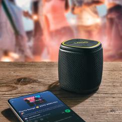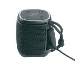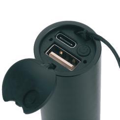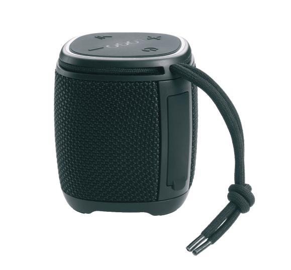 Schwarzwolf outdoor wireless slightly water resistant speaker is made in a black color with a wrist strap. It has an output of 5W, a range of 20 m, Bluetooth V5.1., a slot for a TF card and an USB-C connector. It contains an integrated rechargeable battery with a capacity of 500 mAh. Playing time on one charge is approx. 3–4 hours. Charging time to full charge is approx. 1–2 hours. The laser-engraved logo and border of the control panel is illuminated by changing colors of LED light. The speaker has a IPX5 water protection. The charging cable is included in the package. Packed in a gift box.