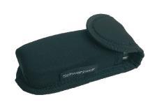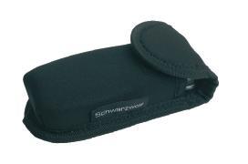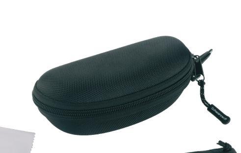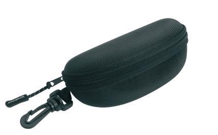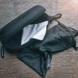 Schwarzwolf hard case for sunglasses. The case is made of black canvas and velvet material. The case has a zipper with Schwarzwolf logo on the zipper slider. The case includes a black microfibre pouch and a white microfibre cleaning cloth suitable for sublimation. Packed in a gift box.