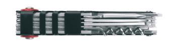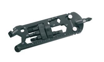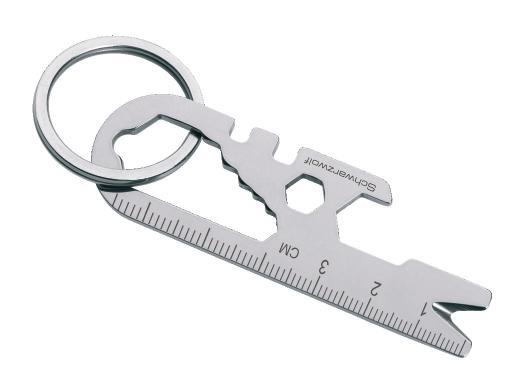 Multifunctional Schwarzwolf keychain contains 13 tools: meter ruler, magnet, nail lifter, spanner (6 sizes), bottle opener, valve key, spokes key (2 sizes). Comes in handy especially when you haven´t got your tool box or can opener at your disposal. Packed in a gift box.