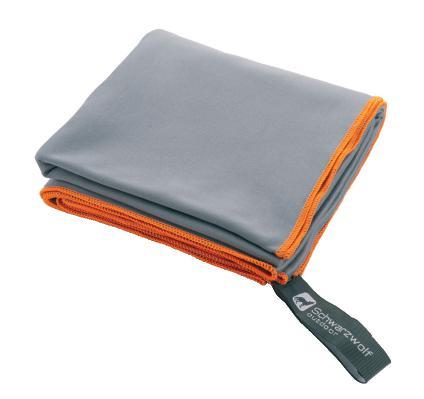 Schwarzwolf outdoor towel in a grey color with orange hemming. It is ideal for your sports activities or travelling, made of microfibre. The towel is quick-drying, lightweight and space-saving. Its big advantage is that it is possible to fold the towel into all luggage. Its soft and smooth surface is very pleasant to your skin. It has a very practical detachable hanging loop with the Schwarzwolf logo. Thanks to its size you can also use it as a bed pad. You can shake out sand or grass very easily from the towel. Packed in a polyester mesh case.