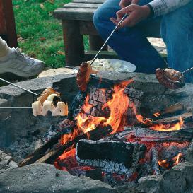 Practical Schwarzwolf set of two telescopic BBQ forks, packed in a drawstring nylon pouch.