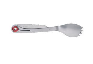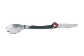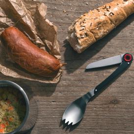 Multifunctional Schwarzwolf spoon includes a knife and its end with teeth can be used as a fork, together being ideal cutlery for your camping. Comes in a bag and packed in a gift box. Material: S/S 2CR14 steel