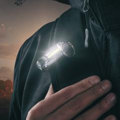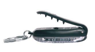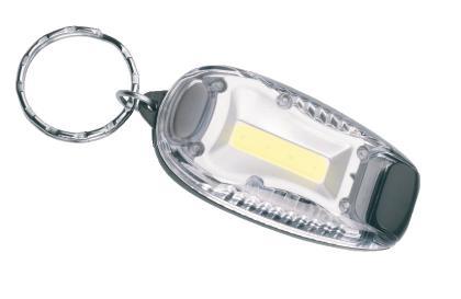 Schwarzwolf small safety light with COB diode and flashing mode. Possibility of holding with plastic clip or keyring.