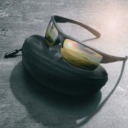 Polarized Schwarzwolf sports sunglasses with colored lenses. The sunglasses are made in a black color with Schwarzwof logo on the glasses arms. The lenses have UV400 protection. Polarized glasses reduce unpleasant glare and eye fatigue. Thanks to orange lenses that raise a contrasting vision the glasses are ideal for driving and winter sports. Comes in a black microfibre pouch and a practical hard black case with a zipper. Includes a white microfibre cleaning cloth suitable for sublimation. Packed in a gift box.